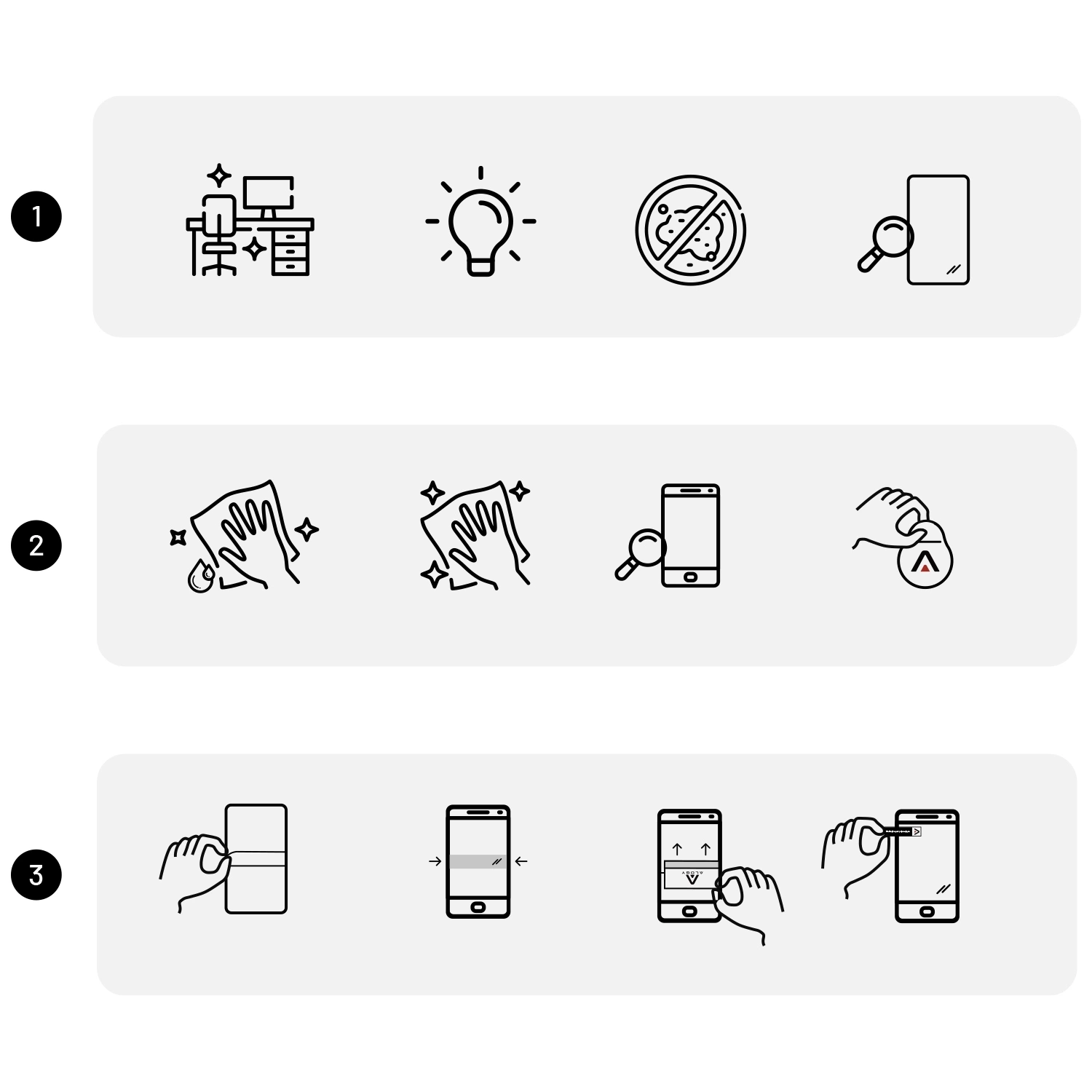 ✅ Dank dieses Kits wird die Installation einfacher und effektiver und gewährleistet eine perfekte Haftung und Schutz des Bildschirms. Keine Blasen und Unebenheiten mehr!