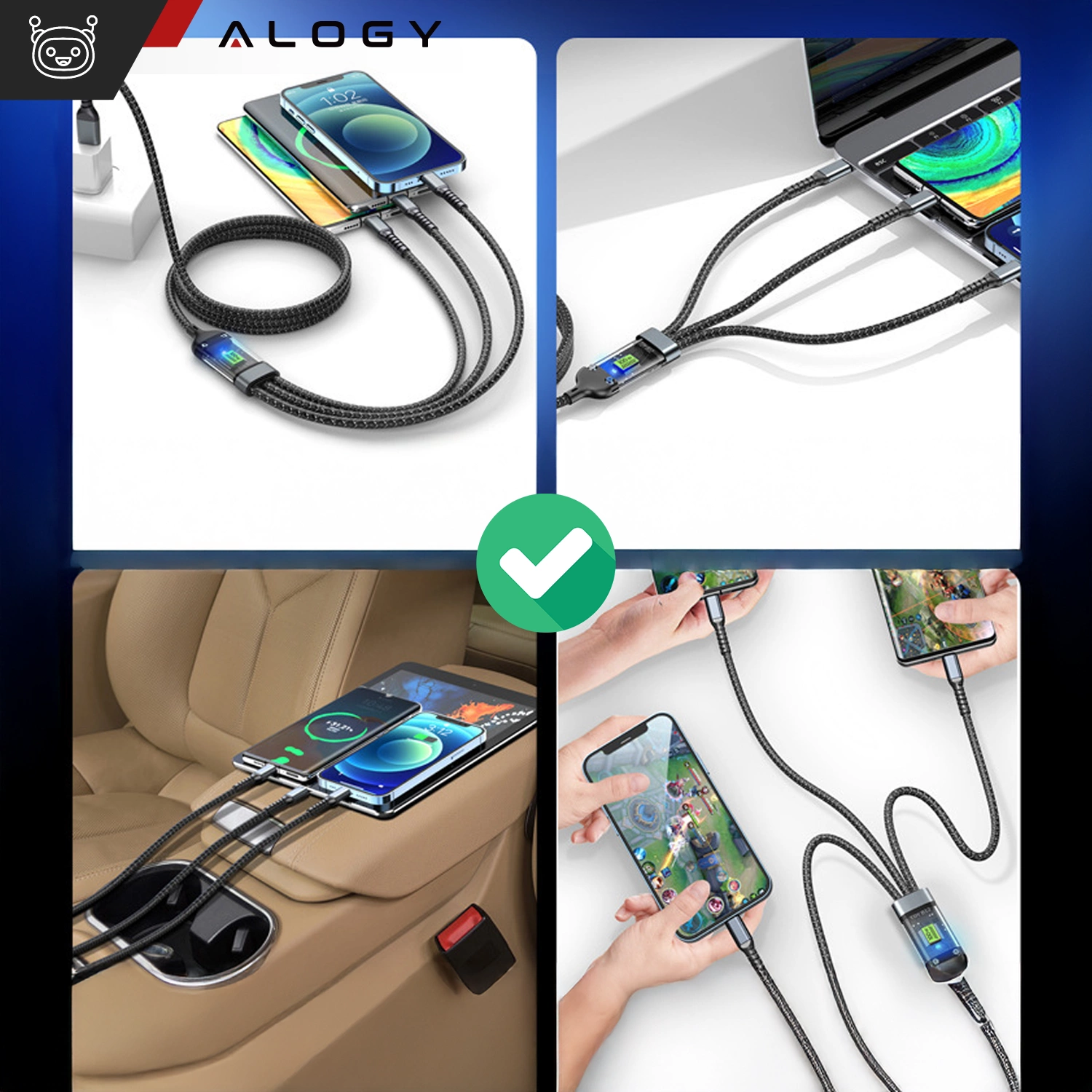 ❤️ Das Alogy 3-in-1-Kabel ist mit integrierten Schutzmechanismen ausgestattet, die Ihre Geräte vor Überhitzung, Überspannung und Überladung schützen und so ein sicheres Laden jeden Tag gewährleisten.