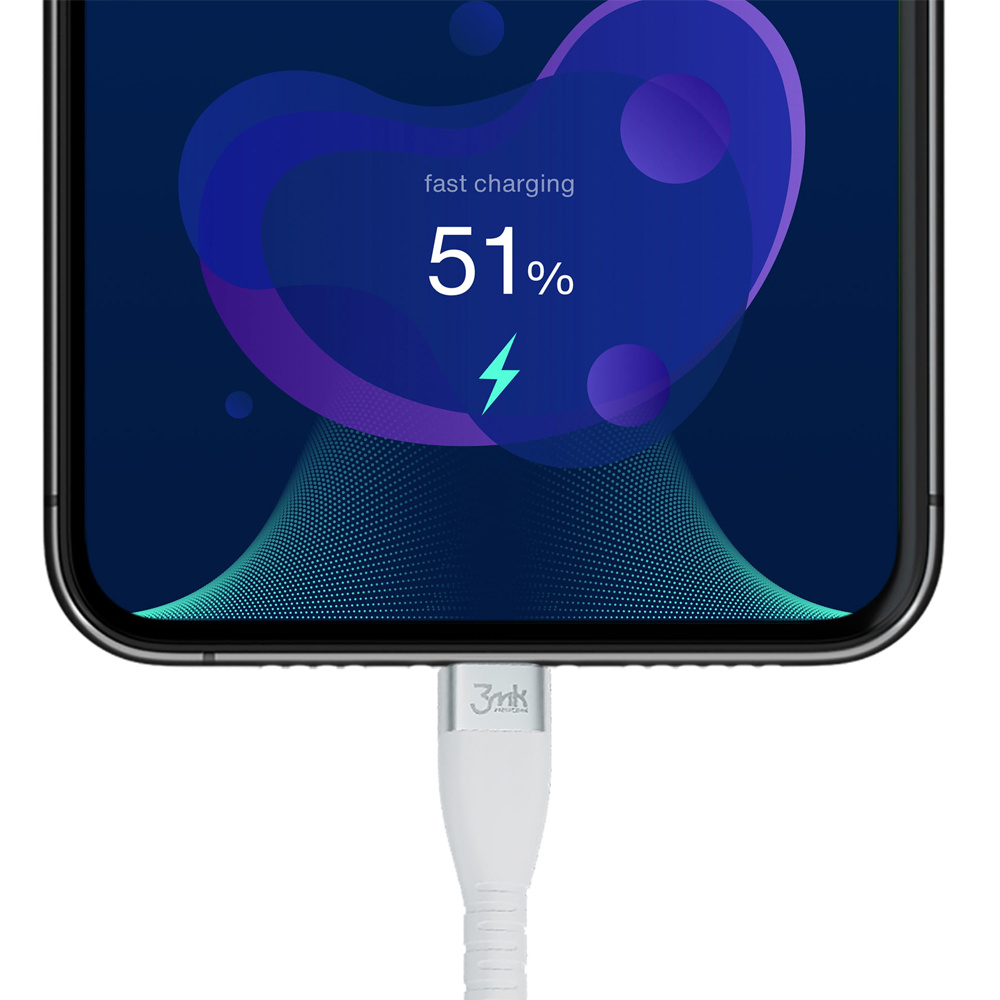 Das 3mk -Kabel ist ein hochwertiges Kabel, mit dem wir Geräte wie iPhone oder iPad schnell und sicher aufladen und Daten zwischen Geräten synchronisieren können . Das Produkt verfügt über zwei verstärkte USB-C- und Lightning- Anschlüsse aus Aluminium . Die gesamte Struktur des Kabels ist mit einem Soft-Touch-Silikon überzogen, das es äußerst flexibel macht.