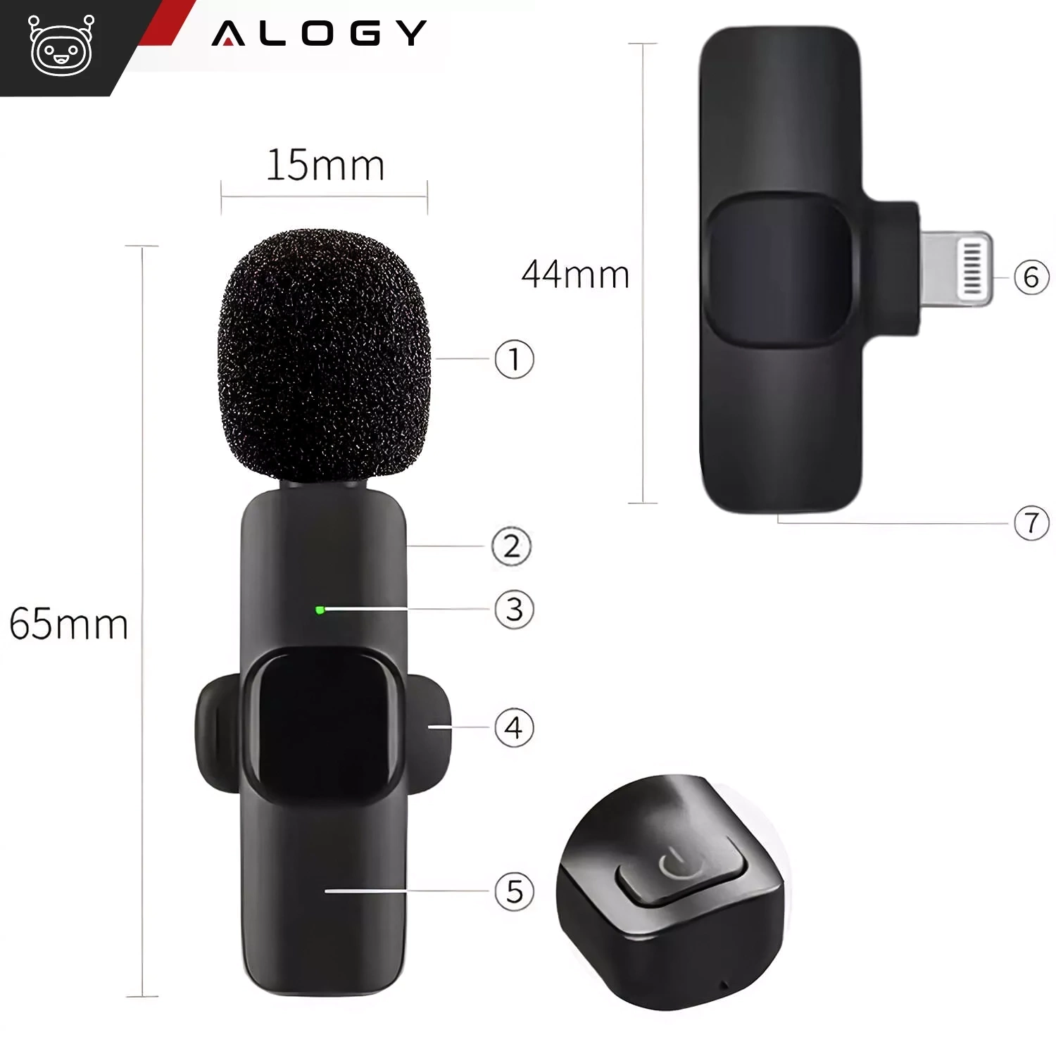 2x Alogy Lightning Wireless Lavalier-Mikrofon für Apple iPhone iPad Kleine Mikrofone Set bestehend aus zwei Mikrofonen x 1