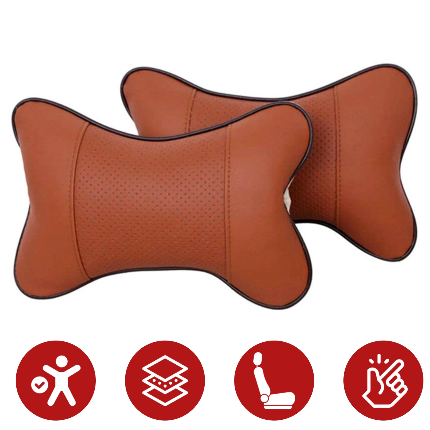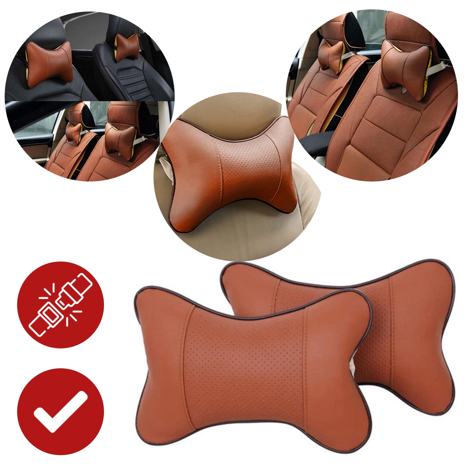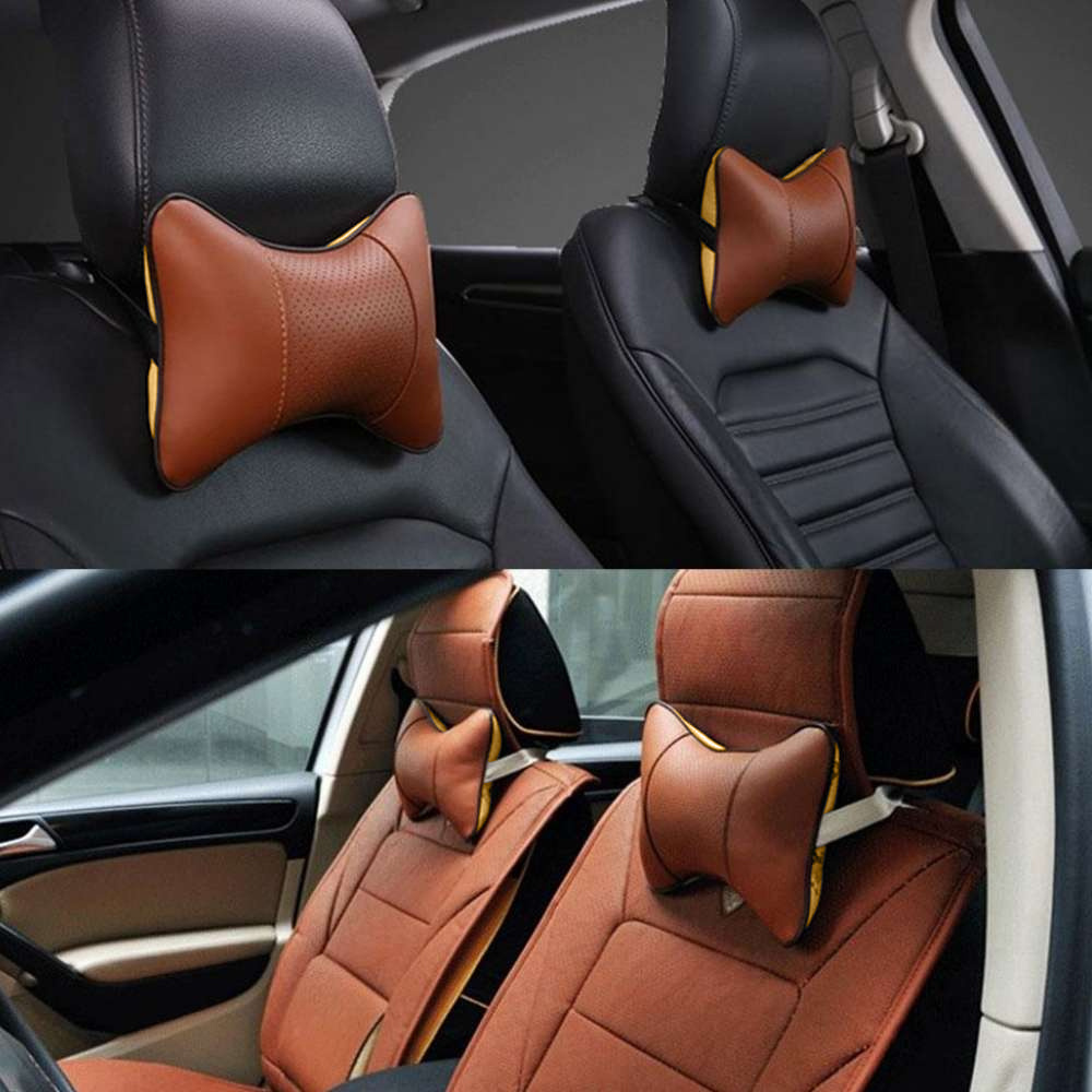 2x Auto Kopfstützenkissen bequemes Auto Nackenkissen Braun x 1