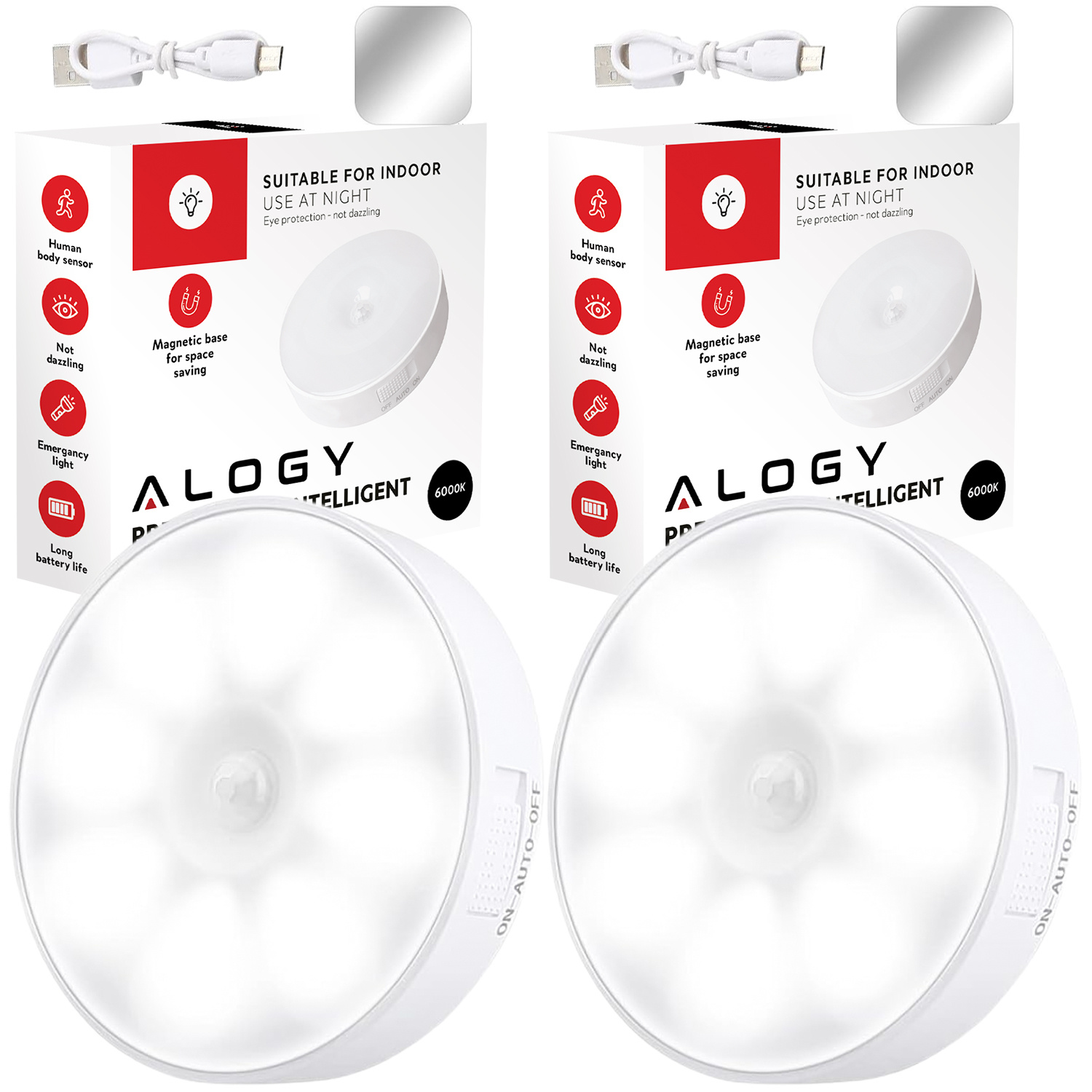 2x Lampe LED Bewegungsmelder Dämmerung Nachtlampe Alogy Sensor Light Kabellose Möbelbeleuchtung Weißes Licht 6000k x 1