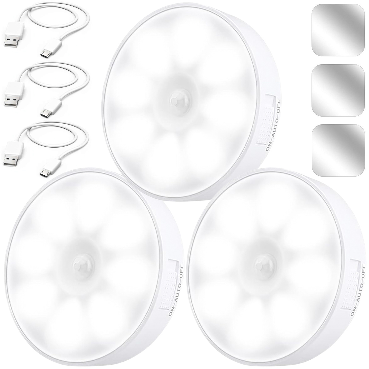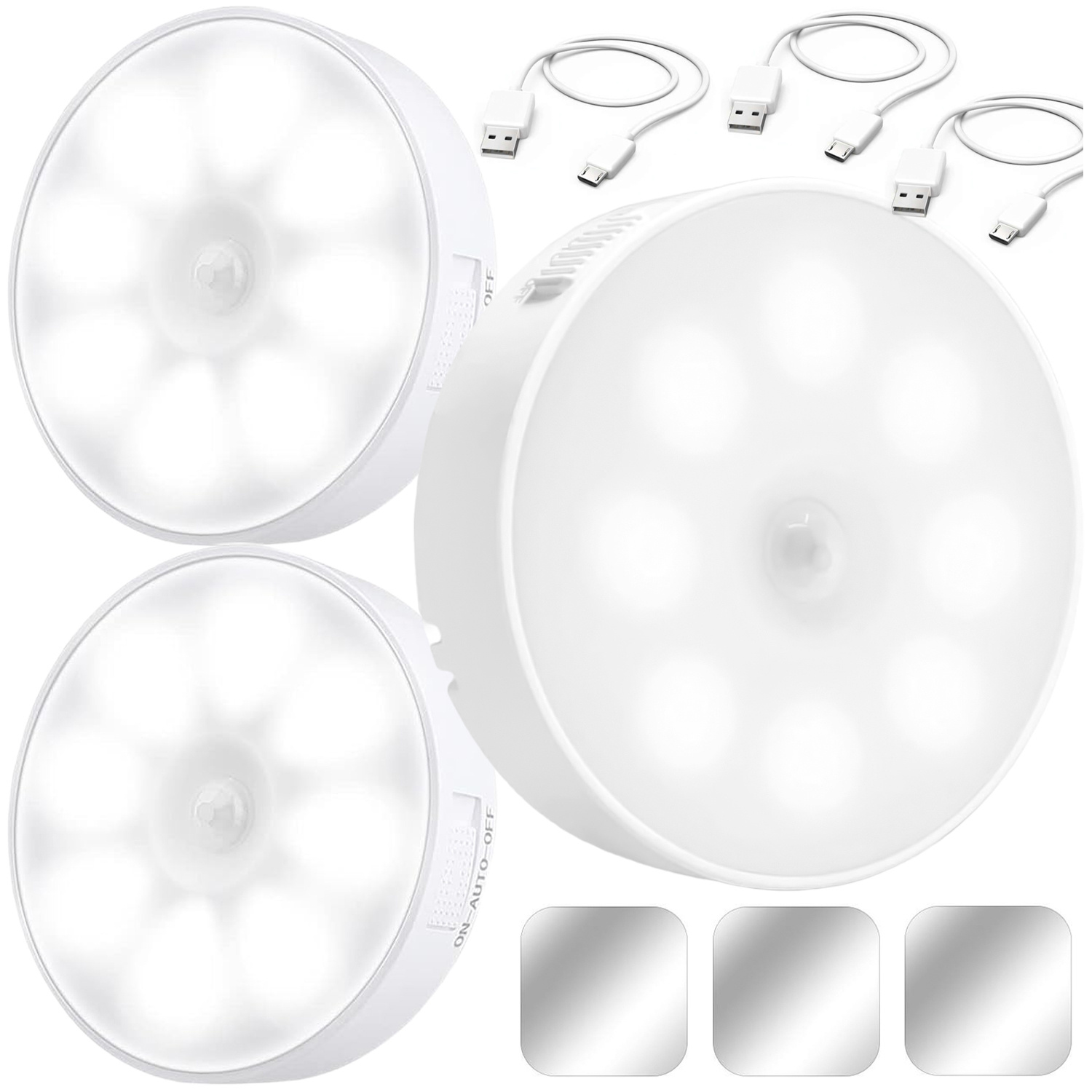 3x Lampe LED Bewegungsmelder Dämmerung Nachtlampe Alogy Sensor Light Kabellose Möbelbeleuchtung Weißes Licht 6000k x 1