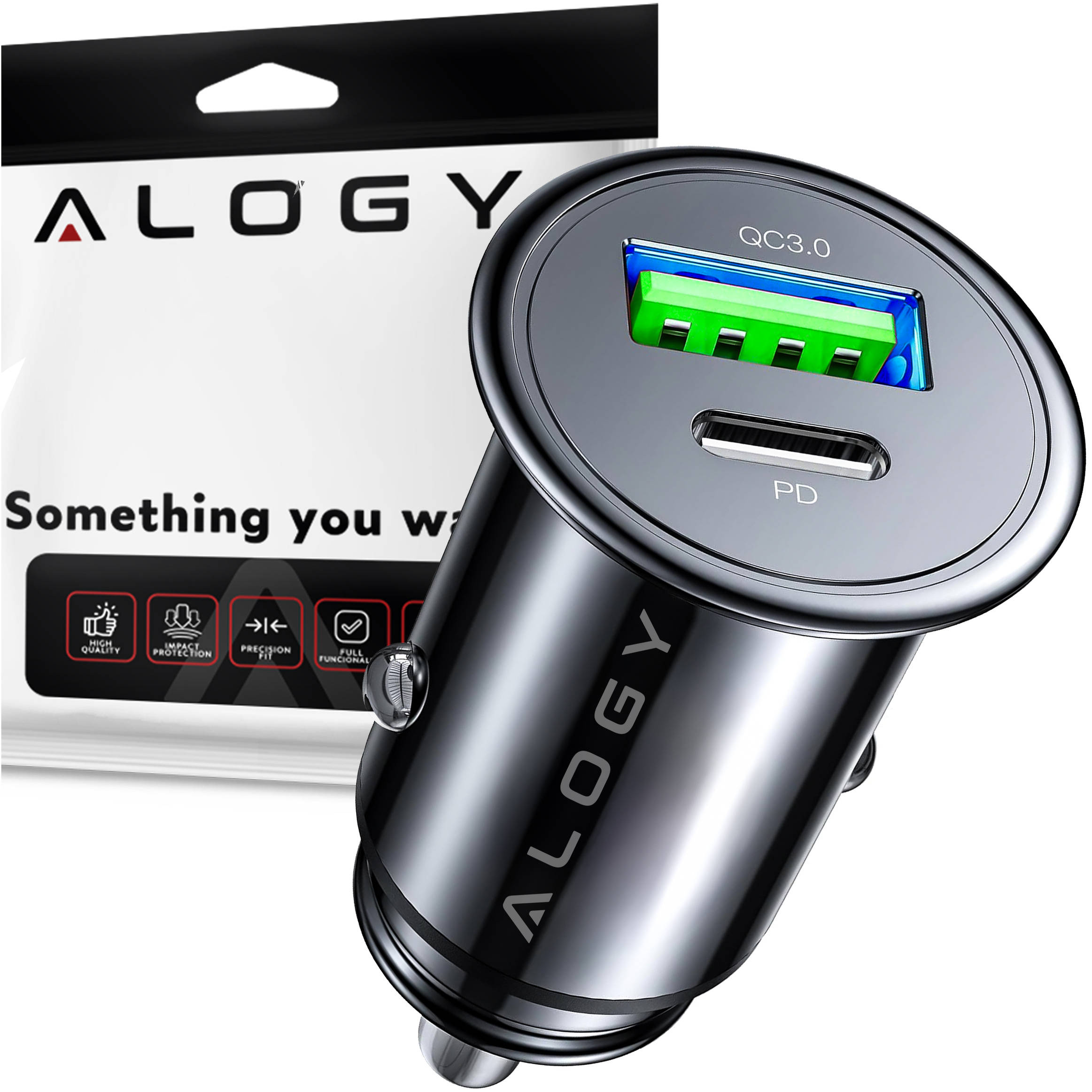 48 W USB QC 3.0 Autoladegerät 18 W USB-C C PD 30 W schnell leistungsstark für Alogy Autotelefon Mattschwarz x 1