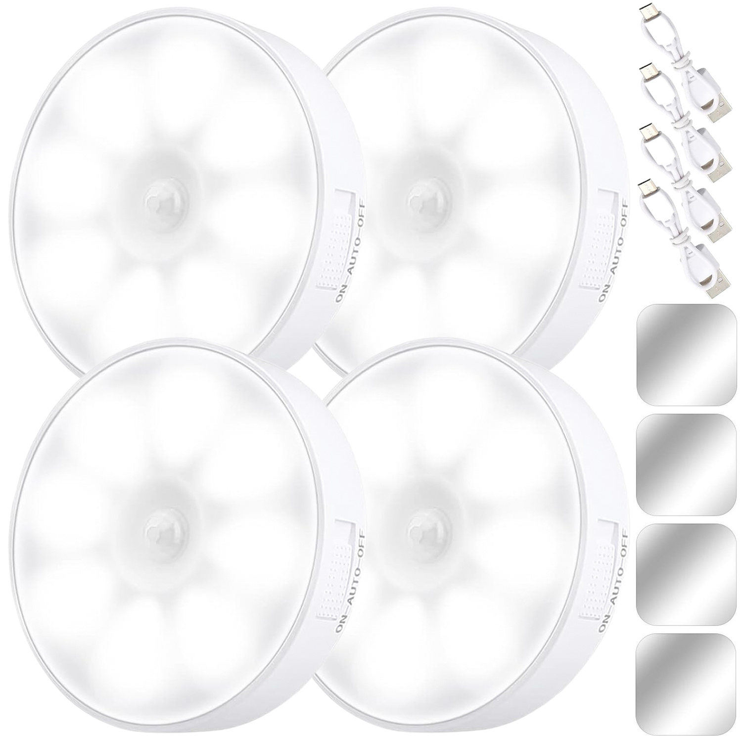 4x Lampe LED Bewegungsmelder Dämmerung Nachtlampe Alogy Sensor Light Kabellose Möbelbeleuchtung Weißes Licht 6000k