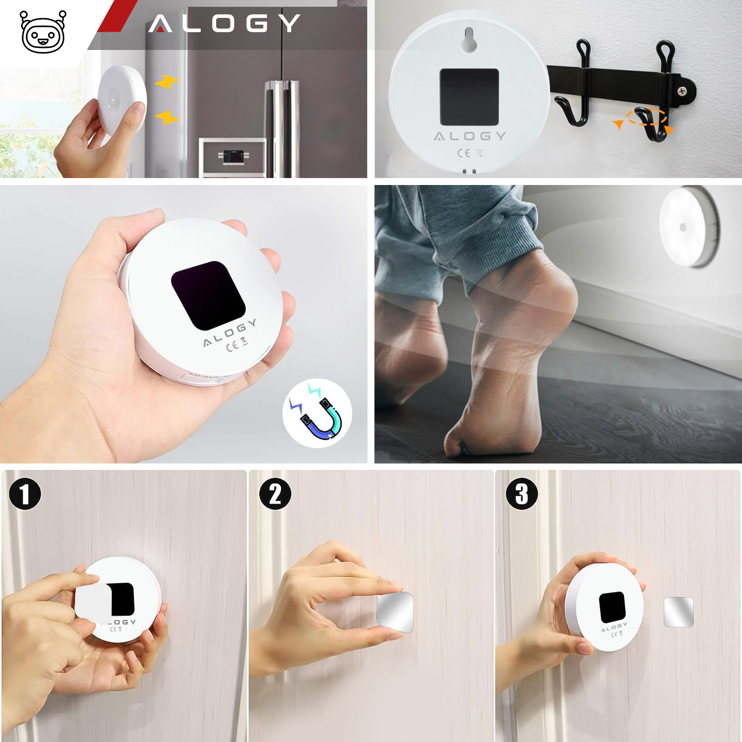 • Lampe LED-Nachtlampe mit Bewegungsmelder Alogy Sensor Light Kabellose Möbelbeleuchtung Warmes Licht zur Beleuchtung von z. B. Räumen, Fluren, Treppen oder Kleiderschränken. Der Dämmerungssensor schaltet die Lampe automatisch ein.