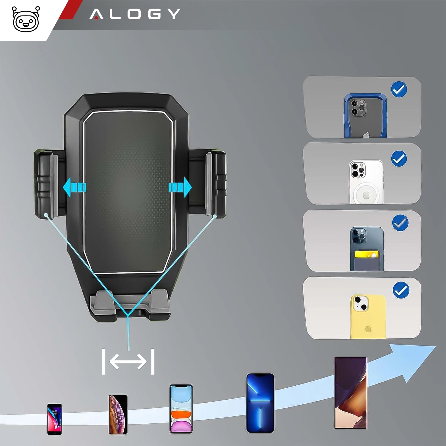 ⭐ Der Halter passt sich an verschiedene Smartphone-Modelle an, indem die Breite der Klemmen von 6,5 cm bis 10,5 cm angepasst wird , sodass Sie Geräte unterschiedlicher Größe stabil halten können.