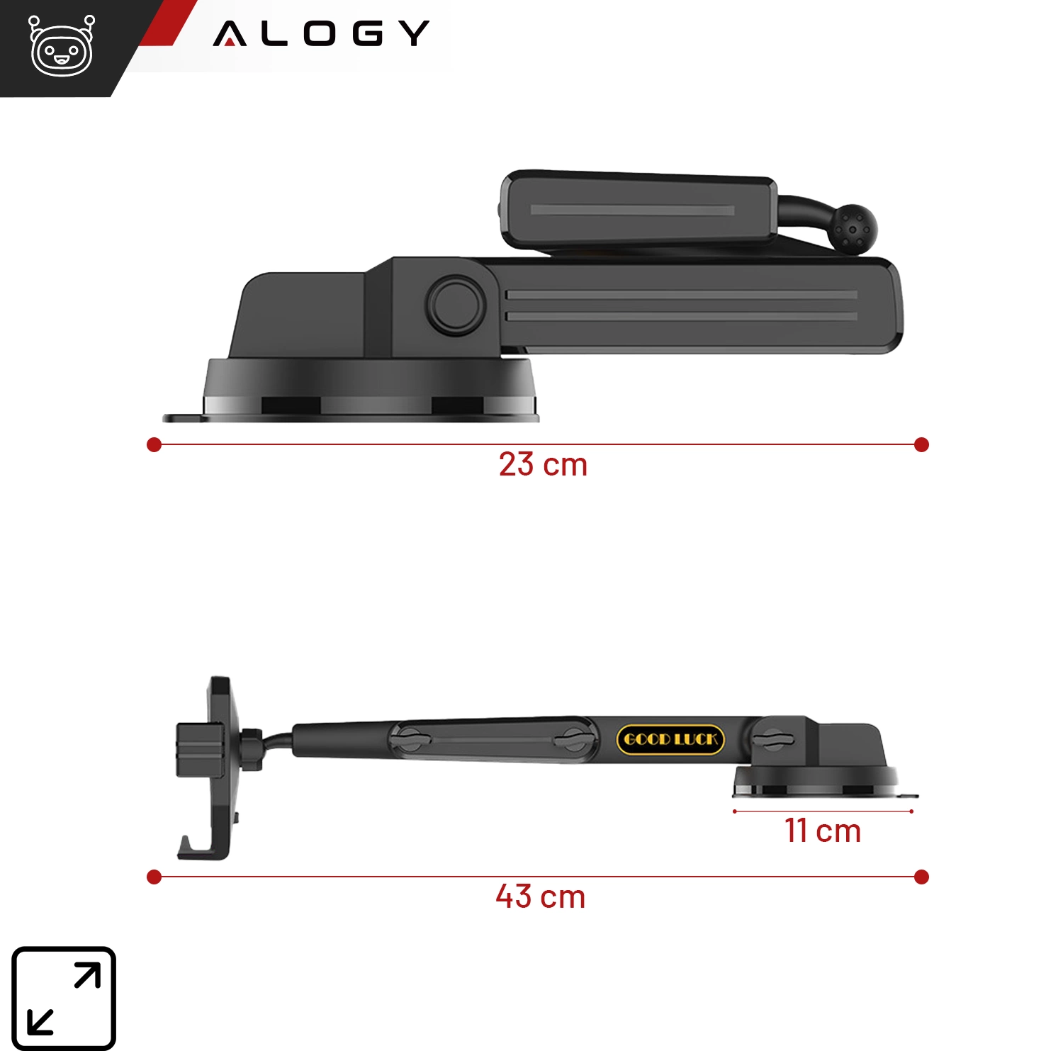 7,2-Zoll-Autotelefonhalter für LKW, Bus, LKW, Bagger, Auto, 43 cm lang, für das Cockpitfenster, Alogy, Schwarz x 1