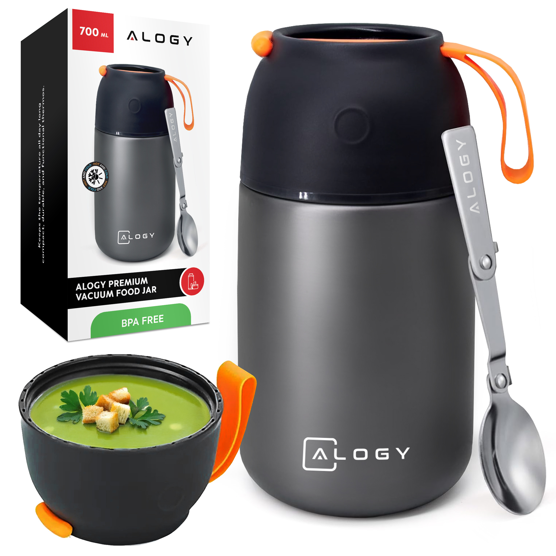 Abendessen-Thermoskanne für Kinder-Suppe, Essen, 700 ml, Alogy Edelstahl-Klapplöffel, Thermograu x 1