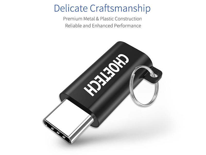Der Choetech Micro USB - USB-C Typ C Adapter ist ein hochwertiger Adapter mit kompakten Abmessungen und elegantem Design. Es ermöglicht das Laden und die kostenlose Synchronisierung von Daten. Der Adapter ermöglicht es uns, Geräte mit einem USB-C-Steckplatz über ein Micro-USB-Kabel anzuschließen. Dadurch können wir Zubehör auf der Basis von Mikrokabeln verwenden, die häufig z.B. an Powerbanks angebracht sind.