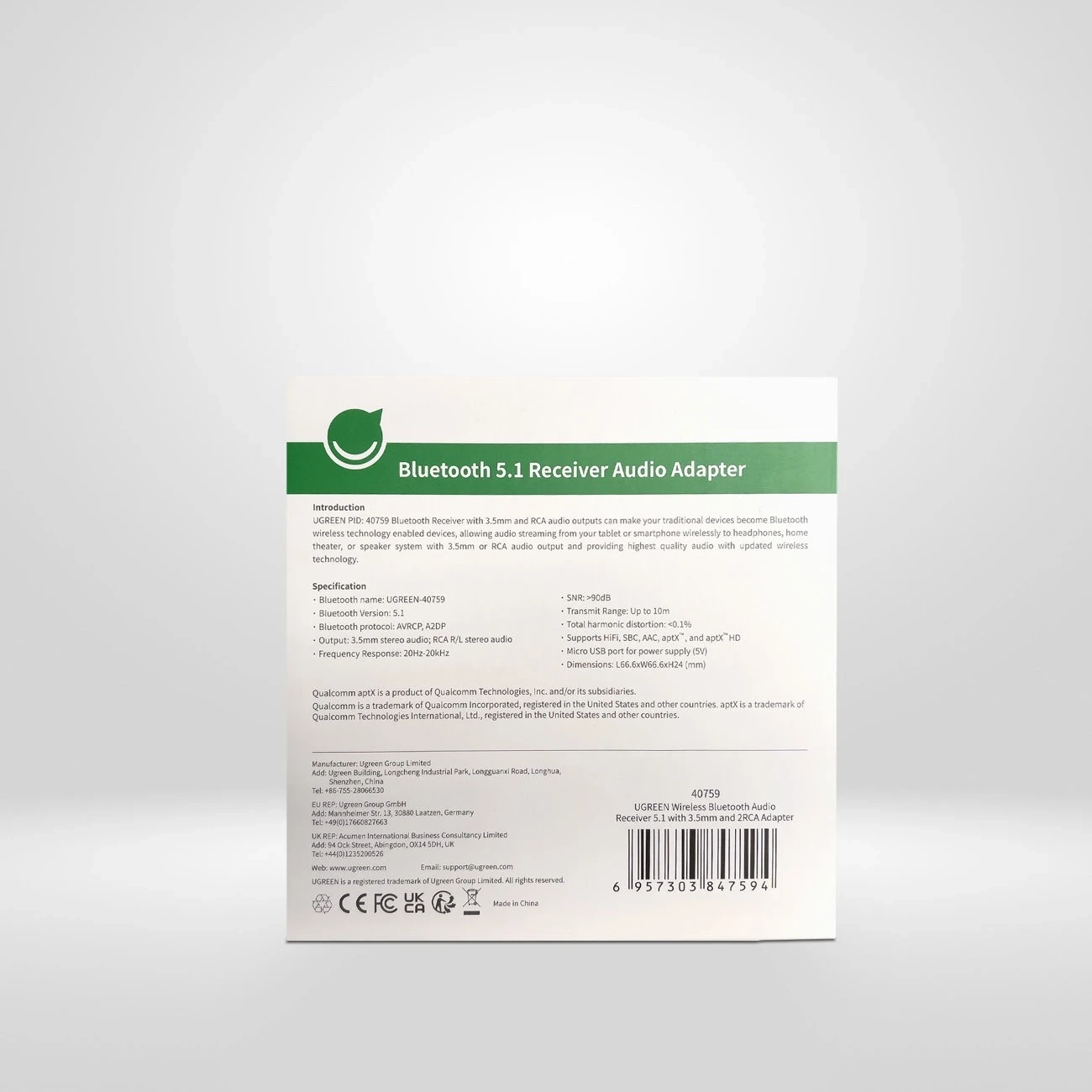 Ugreen Adapter Bluetooth 5.1 Empfänger 2 Cinch / 3,5 mm Miniklinke