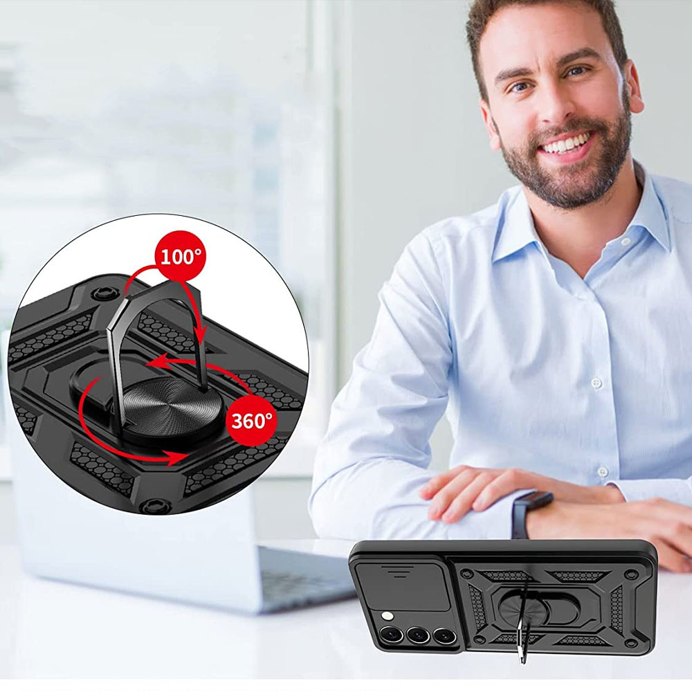 Alogy Camshield Stand Ring Case mit Kameraabdeckung für Samsung Galaxy S23 Plus Armored Black x 1