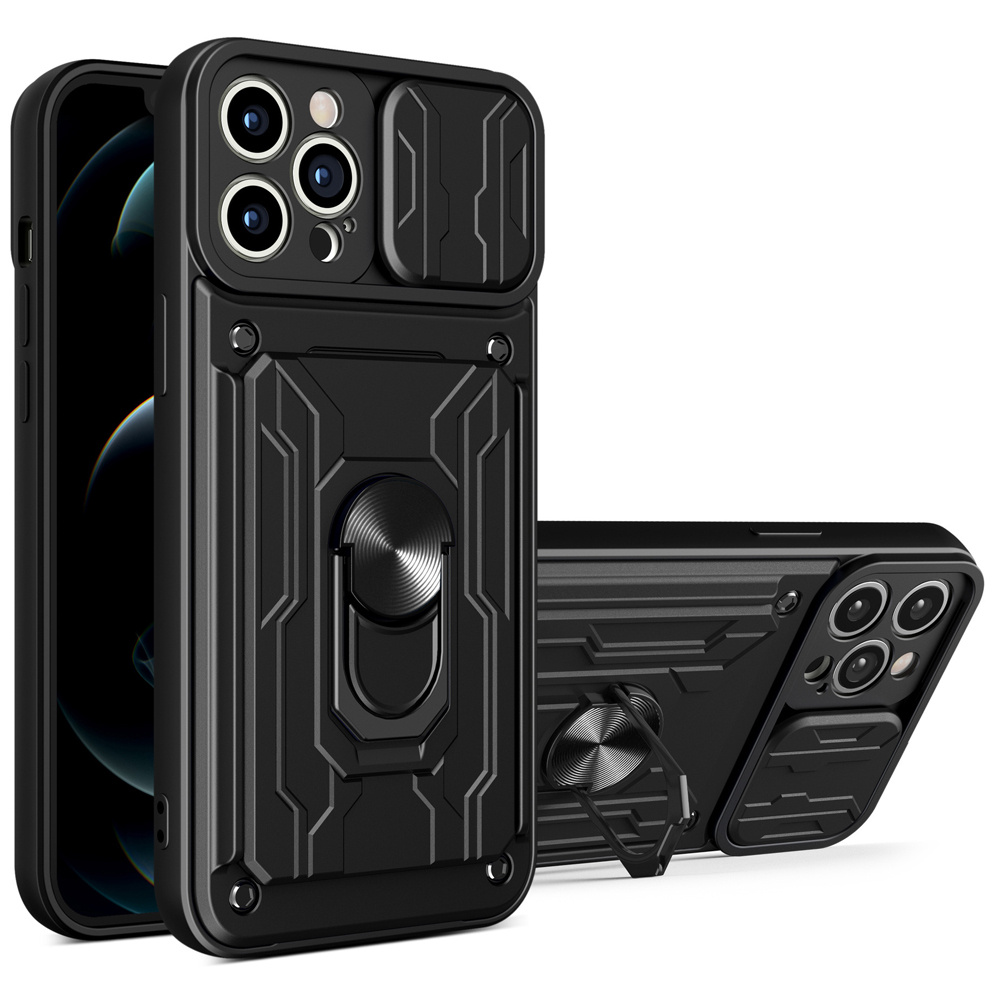 Alogy Camshield Stand Ring Wallet Case mit Kameraabdeckung und Kartenfach für Apple iPhone 14 Pro Schwarz x 1