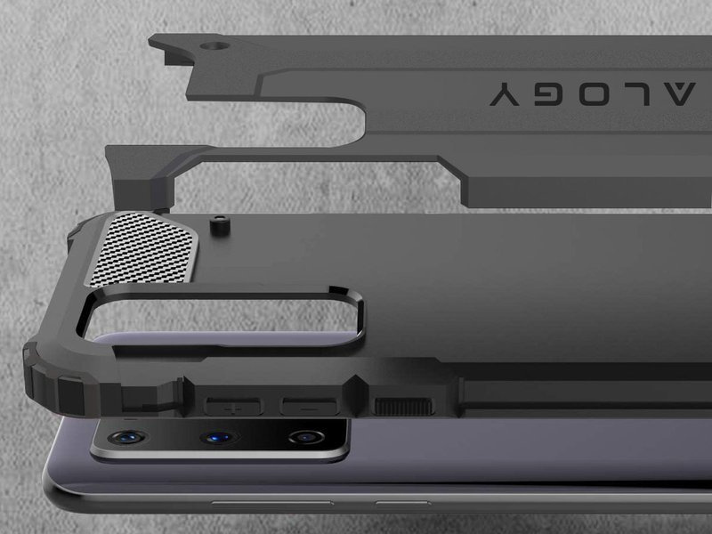 Das Alogy-Gehäuse verfügt über alle notwendigen Aussparungen für Steckplätze und eine Kamera, und die Tasten wurden ordnungsgemäß vor Beschädigungen oder Schmutz geschützt. Darüber hinaus vergrößert die Hülle die Abmessungen unseres Geräts nicht wesentlich, wodurch das Telefon immer noch angenehm in der Hand liegt. Die in allen vier Ecken des Geräts verwendete Airbag-Technologie sorgt für eine effektive Stoßdämpfung, wodurch das Risiko einer Beschädigung des Geräts erheblich reduziert wird. Zusätzlich wird über den Bildschirm und das Objektiv ein Schutzrand geführt, der sie von ebenen Flächen trennt.
