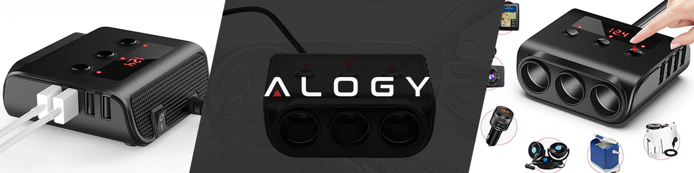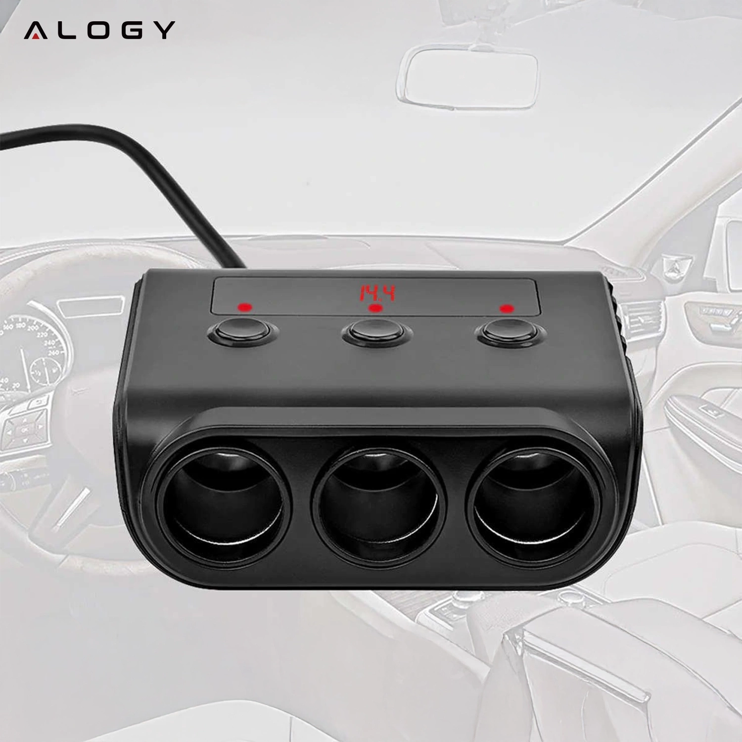 In einer Situation, in der wir mehrere Geräte laden, wird die Spannung aufgeteilt und an jedes Gerät einzeln angepasst. Das Gerät verfügt über ein Display, das über die an einer bestimmten Steckdose übertragene Spannung informiert. Jeder Zigarettenanzünderbuchse ist eine separate Taste zugeordnet. Bei Nichtgebrauch kann das Gerät auf der Rückseite ausgeschaltet werden, ohne den Zigarettenanzünder zu trennen.