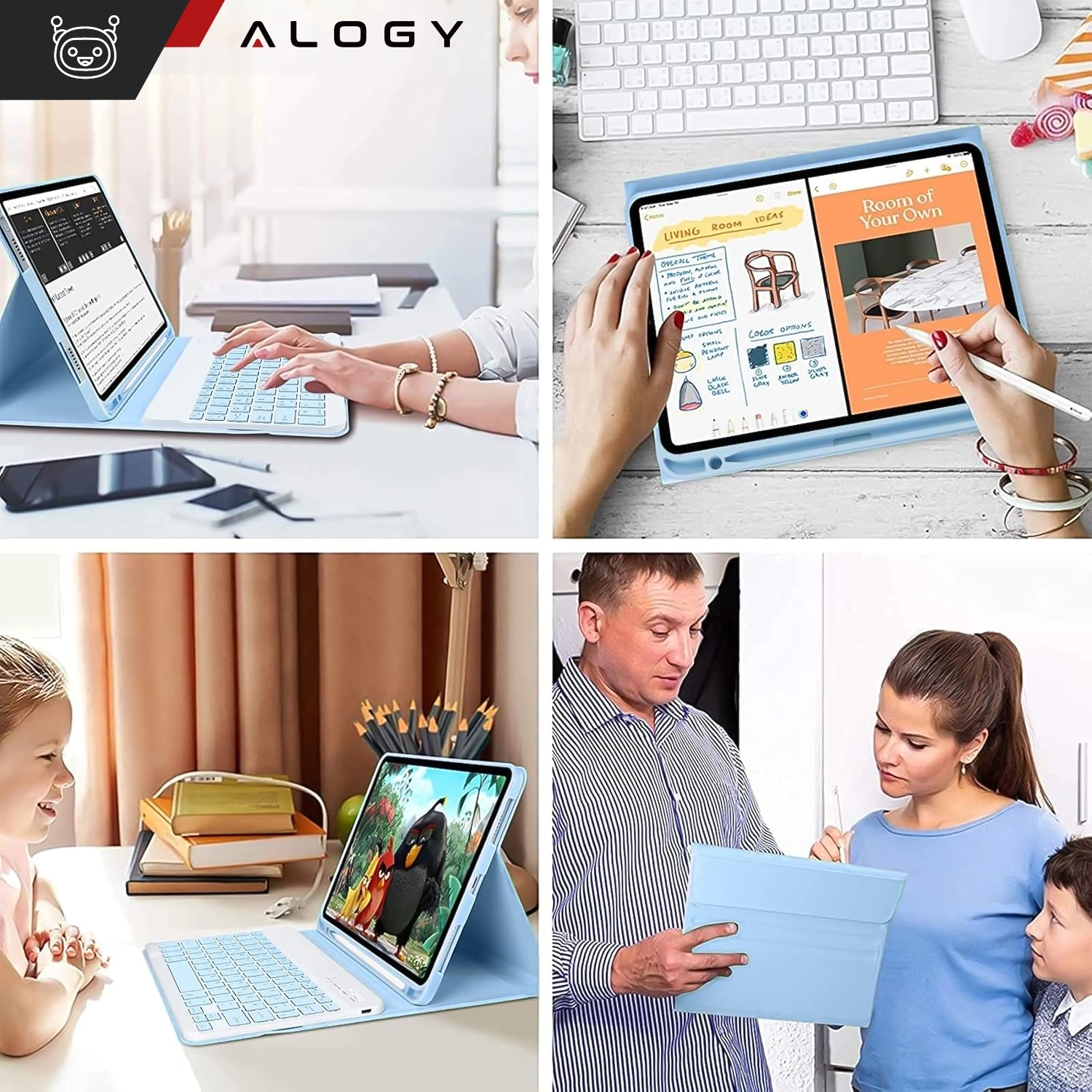 Alogy-Hülle mit Stifthalter, kabellose Tastatur für Apple iPad 11 (2025) / iPad 10.9 (2022), blaues Glas x 1