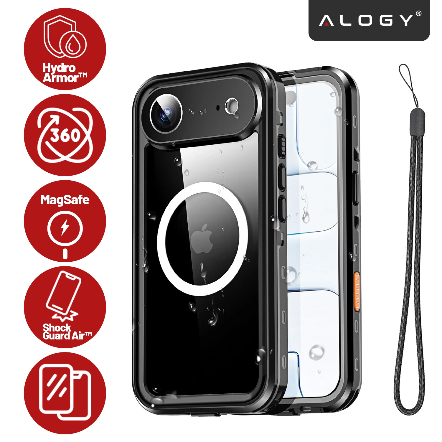 Alogy HydroArmor™ IP68 Schutzhülle für Apple iPhone 17 Air (6,6 Zoll), 360°-Rundumschutz mit transparenter Rückseite, MagSafe-kompatibel, Schwarz x 1