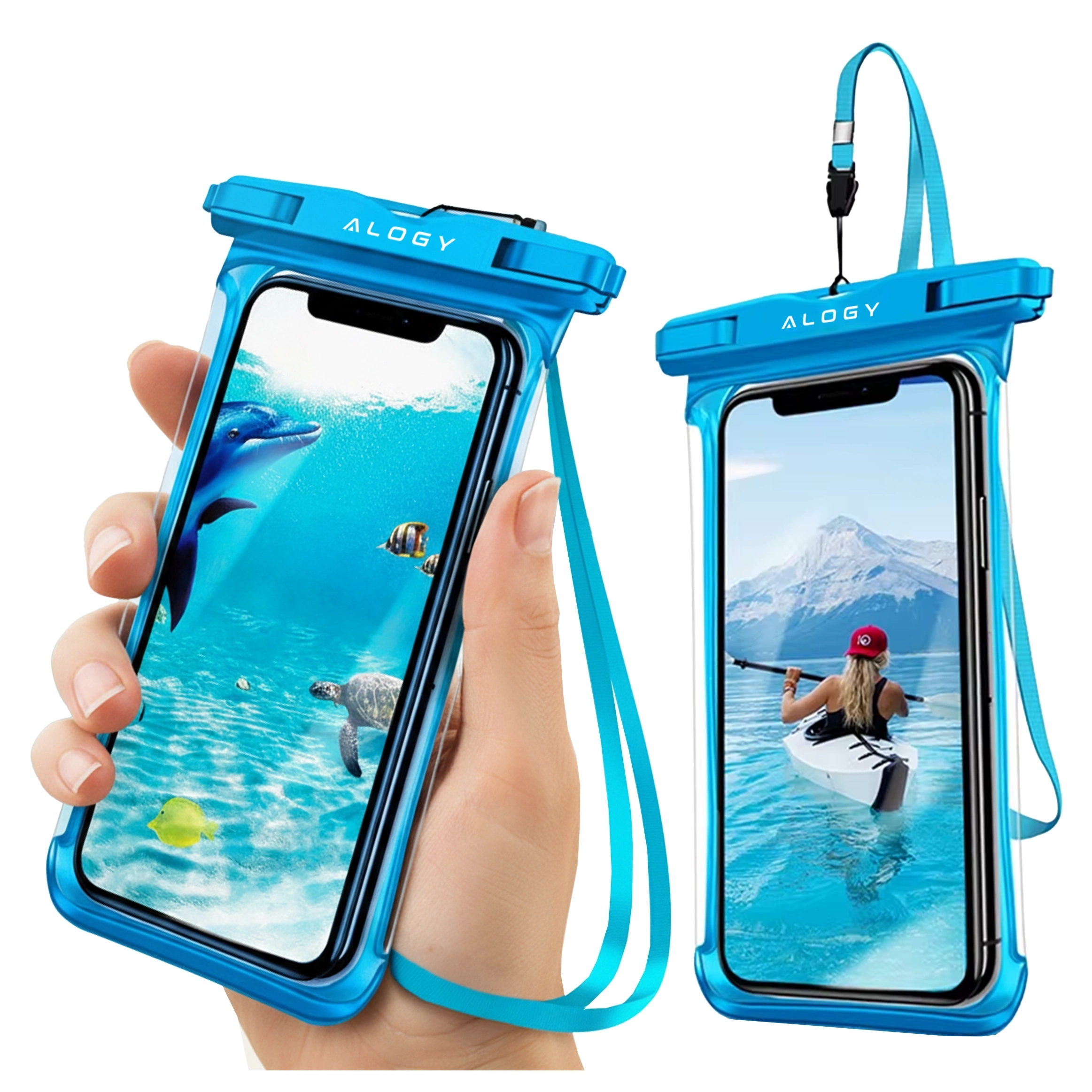 Alogy HydroShield™ Universal IPX8 wasserdichte Hülle für Smartphones bis 6,5 Zoll – Wasserdichter Schutz für Strand, Pool und Kajak, Touchscreen-Bedienung und Tragegurt – Blau x 1