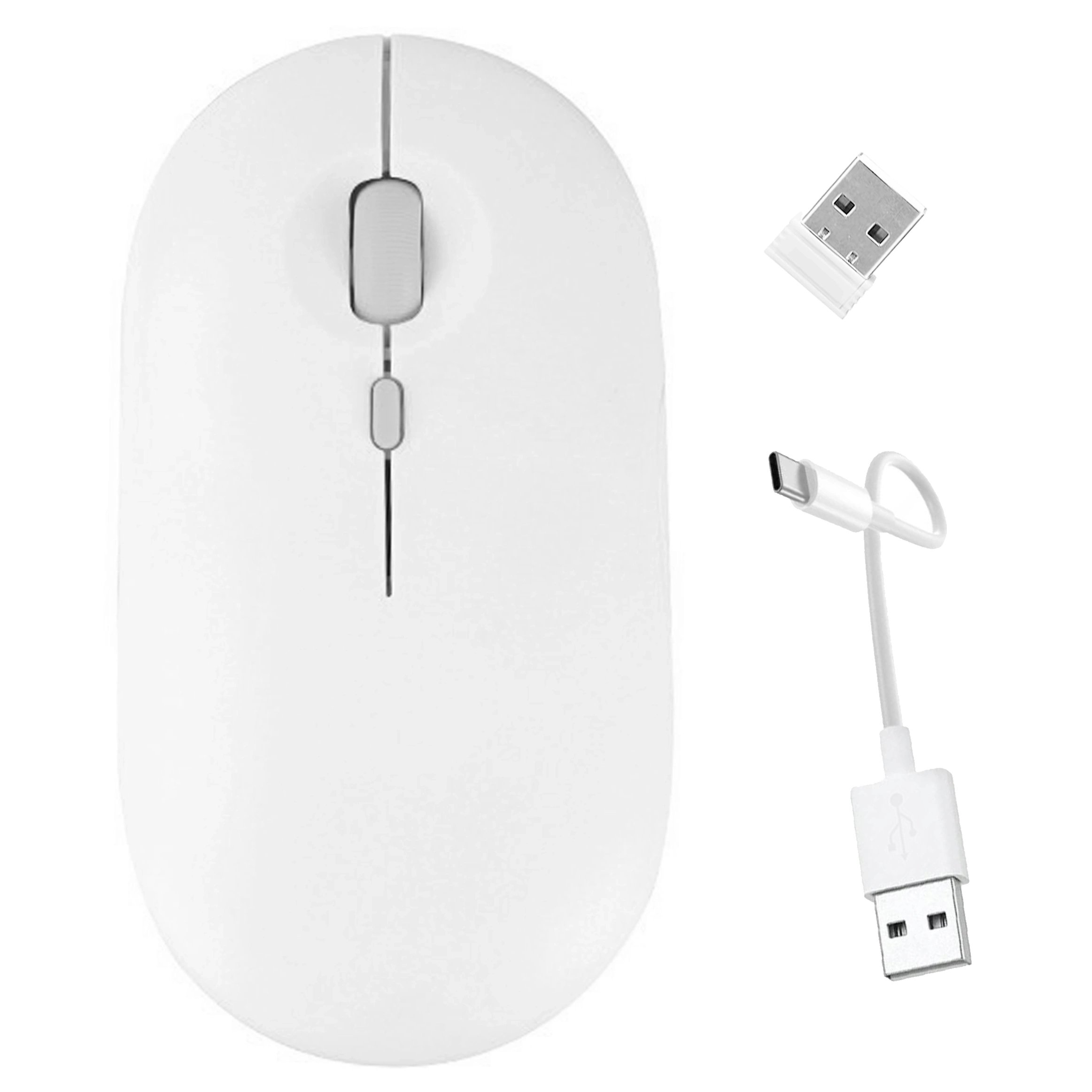 Alogy kabellose Maus, kleine ergonomische Maus für Laptop-PC, Bluetooth 2,4 GHz, leise, weiß