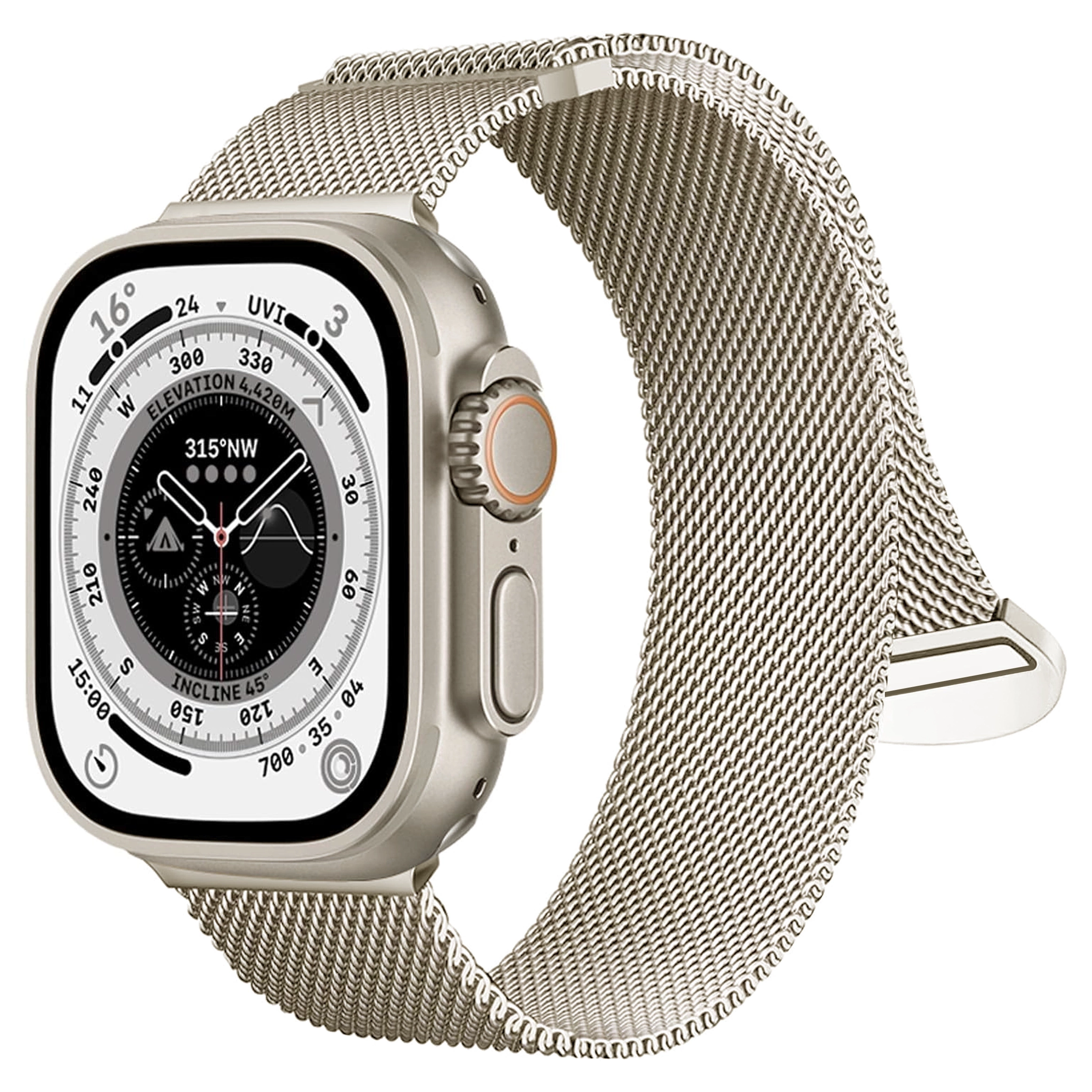 Das Armband ist mit den Apple Watch-Modellen 42 mm, 44 mm, 45 mm und 49 mm kompatibel. Vor dem Kauf empfiehlt es sich, die Modellnummer auf der Rückseite Ihrer Uhr zu überprüfen, um sicherzustellen, dass sie richtig passt.