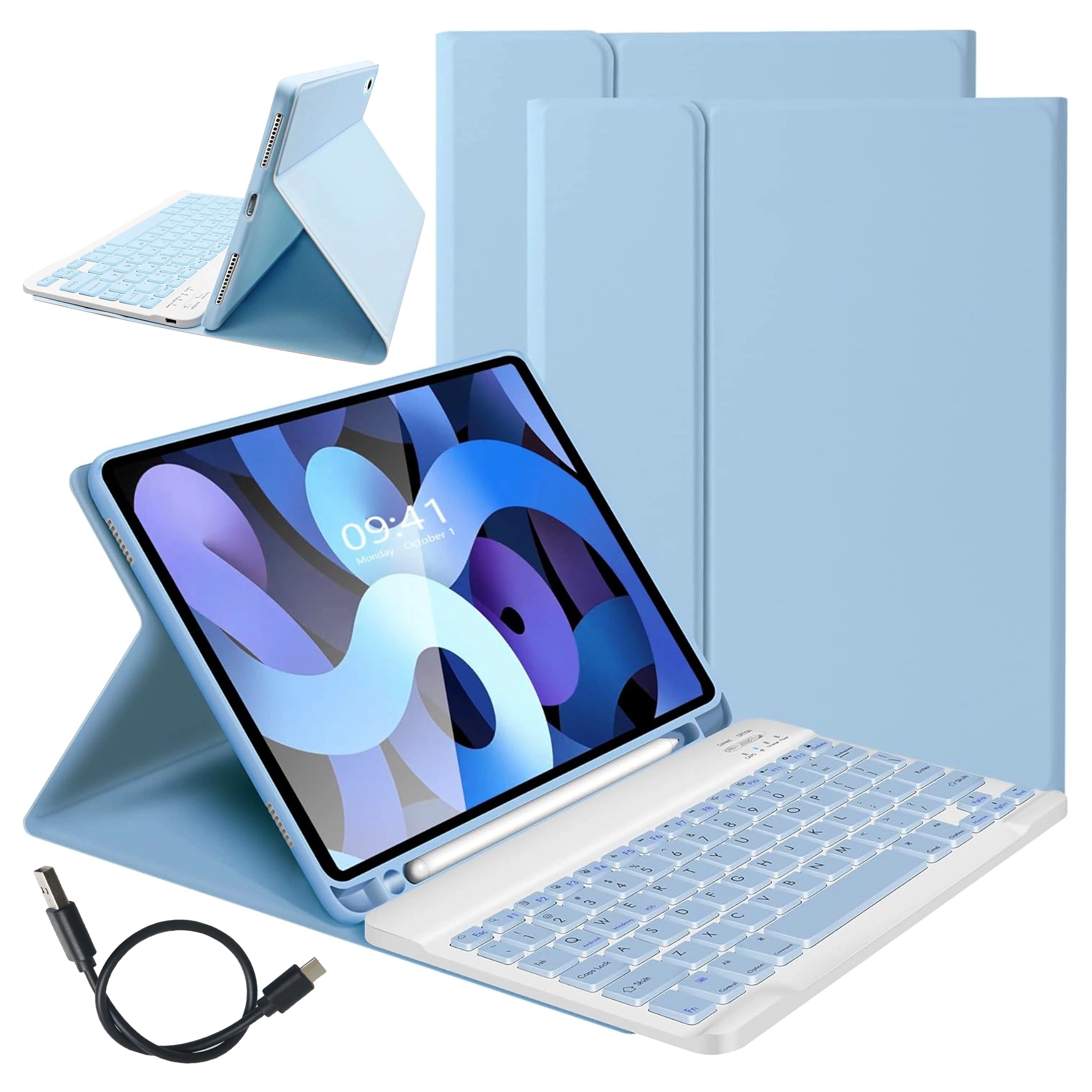 Alogy Tastaturhülle mit Stifthalter, kabellose Tastatur für Apple iPad 11 (2025) / iPad 10.9 (2022), Blau x 1