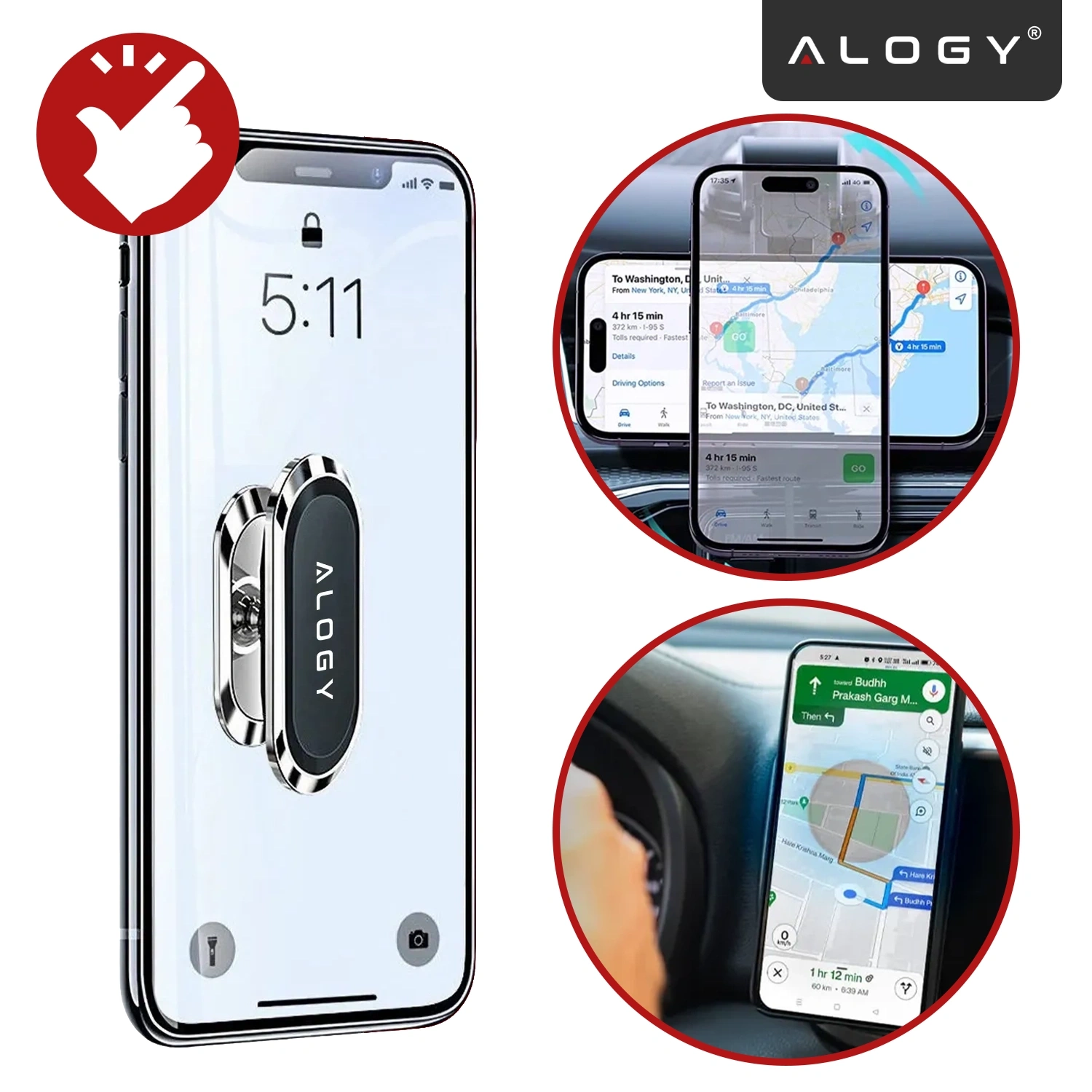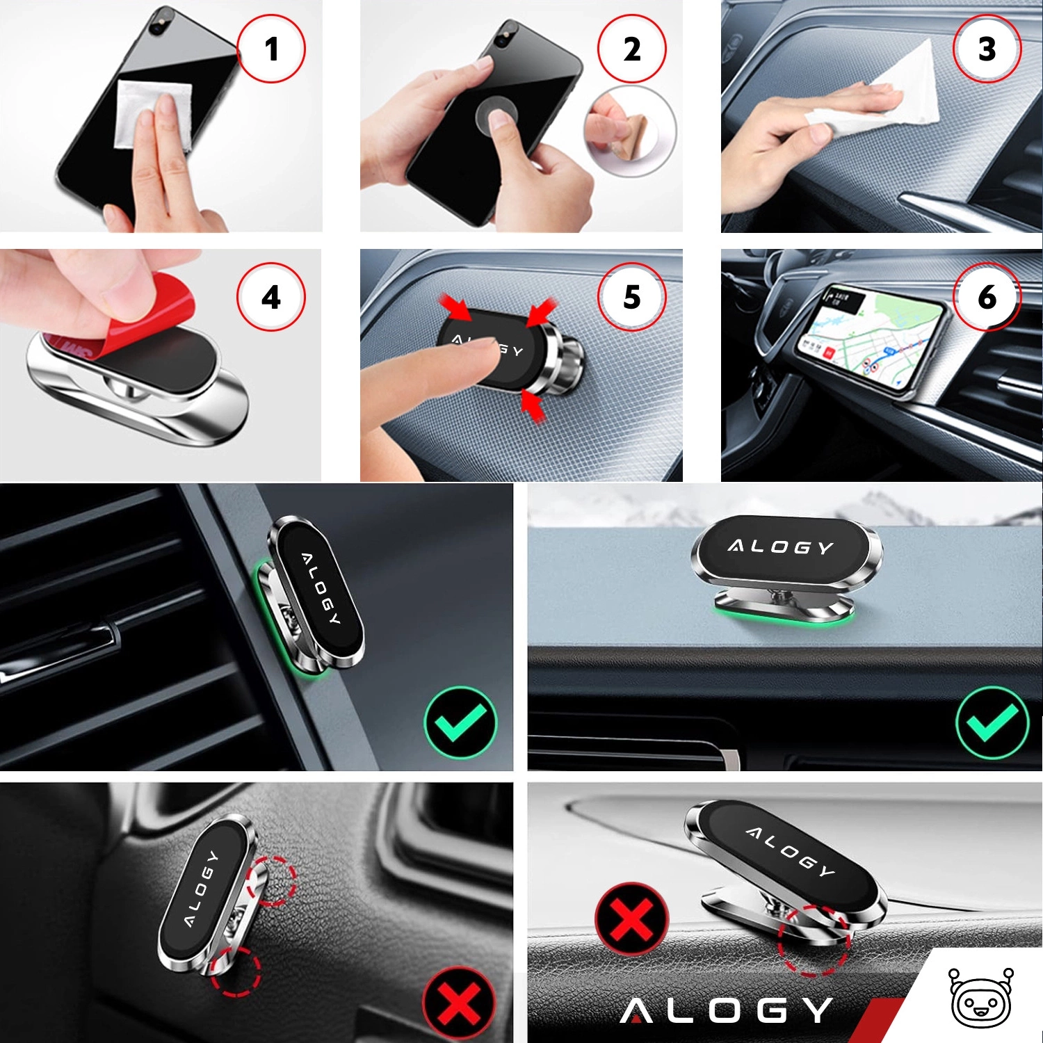 Alogy Universal-Auto-Magnethalterung für Telefon im Cockpit, für Armaturenbrett, Schwarz x 1