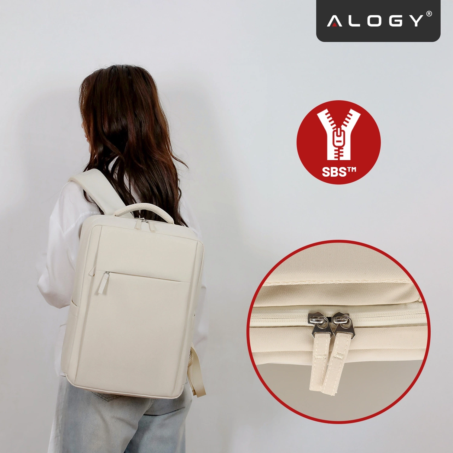 Alogy UrbanPack Pro™ Business-Rucksack für 15-16"-Laptops – Wasserdicht, stoßfest, mit Flaschenfach und Gepäckgurt – Beige x 1