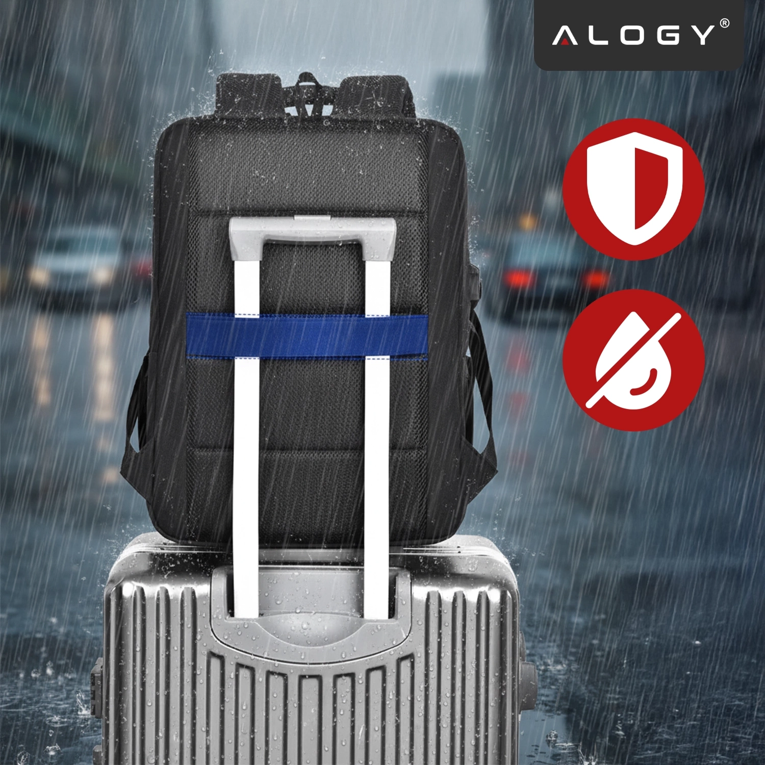 ✅ Alogy verwendet Oxford Pro™-Gewebe mit hydrophober Beschichtung und versiegelten Nähten, die Wasser effektiv fernhalten.