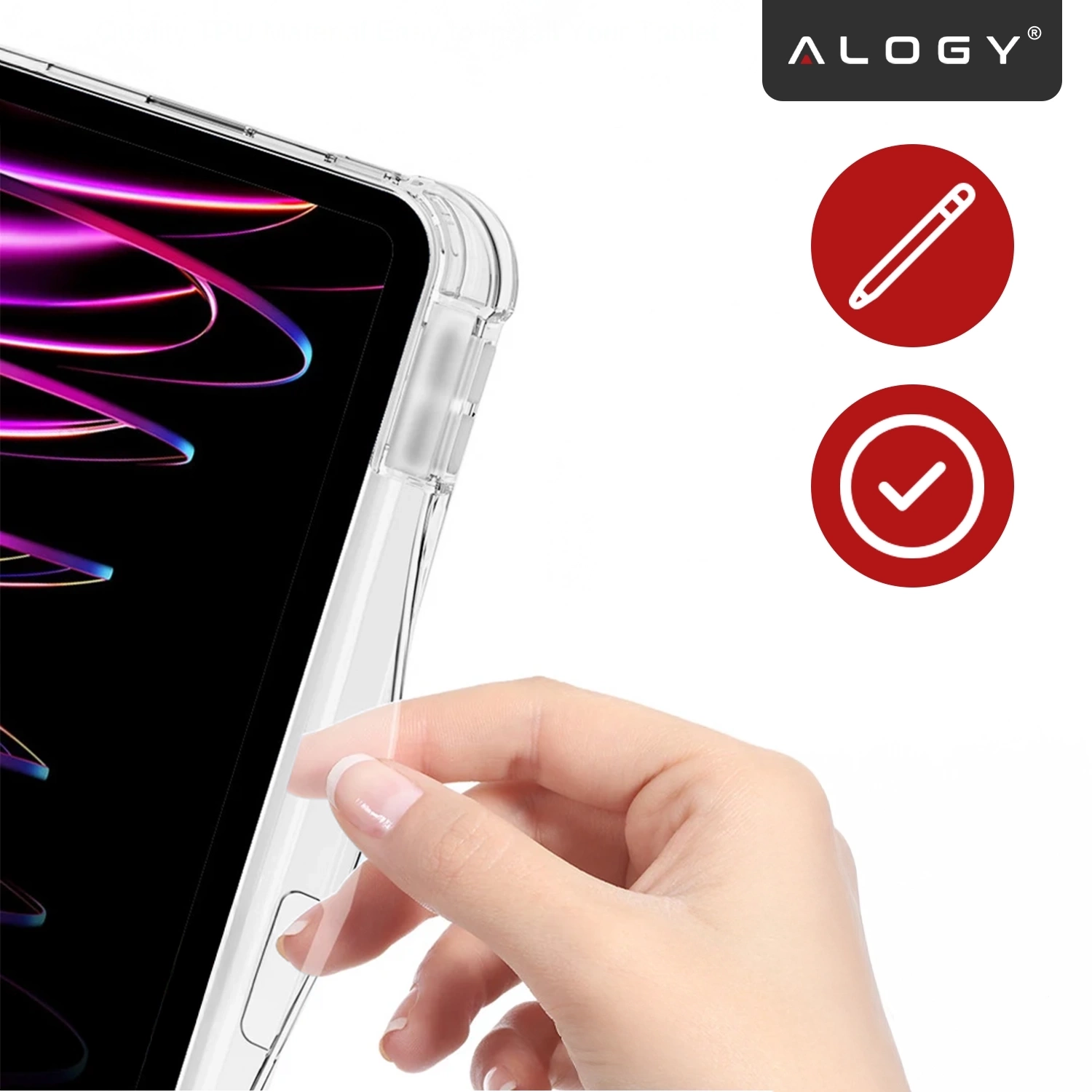 ✅ Die Alogy HybridBook™ -Hülle verfügt über eine integrierte Stifthalterung und einen zusätzlichen Griff , sodass Sie Ihren Stift immer griffbereit haben – sowohl während der Benutzung als auch beim Transport.