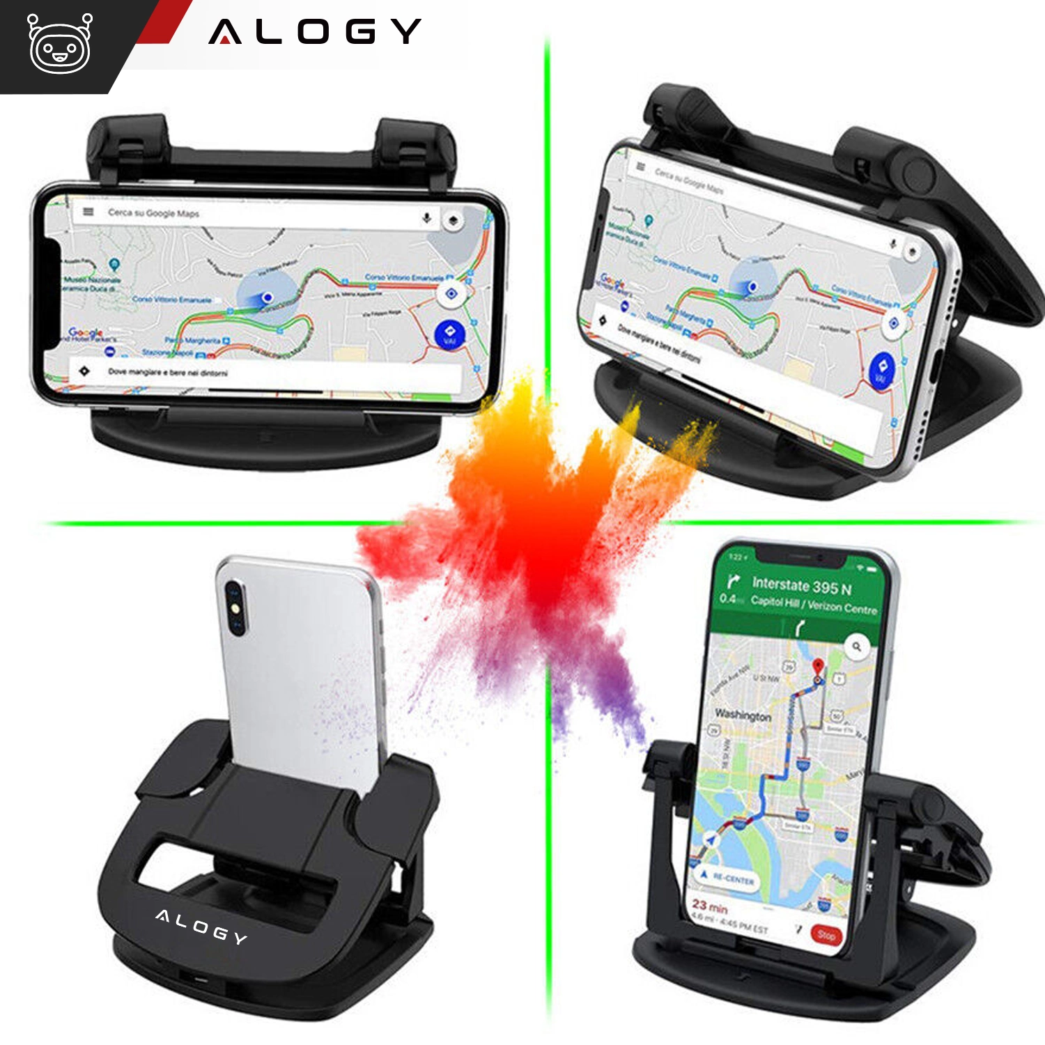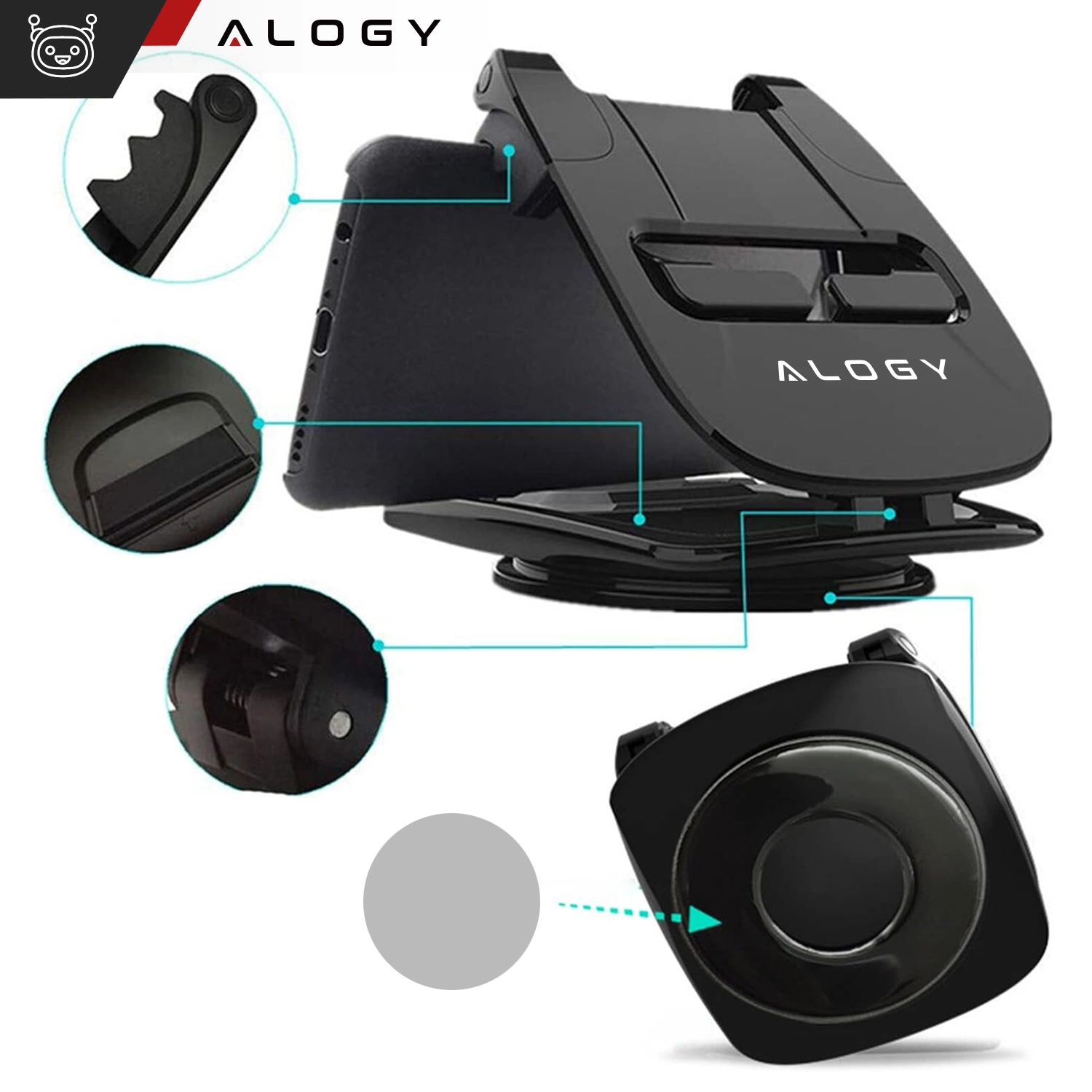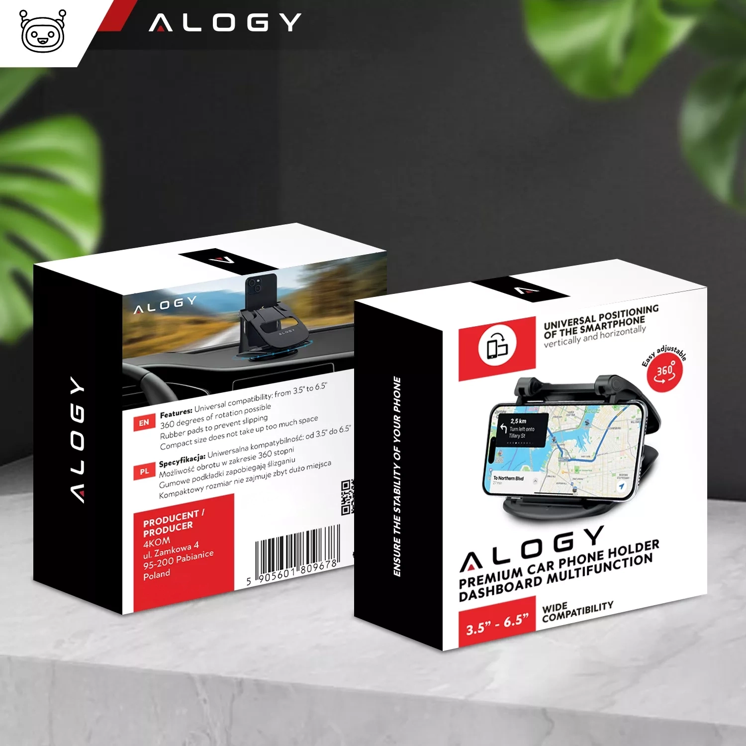Der Alogy-Telefonhalter passt auf Bildschirme von 3,5 bis 6,5 Zoll, was bedeutet, dass er mit den meisten Smartphone-Modellen und Autonavigationssystemen kompatibel ist.