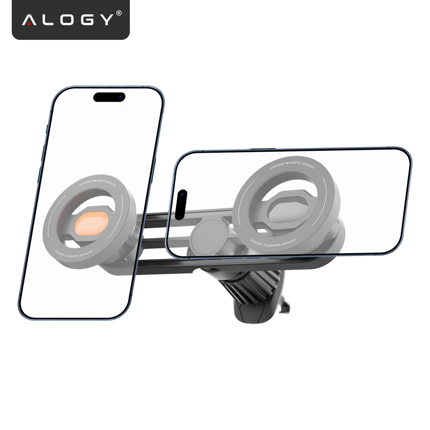 Auto-Lüftungshalterung – MagSafe Doppelhalterung für 2 Smartphones, robust und stabil, magnetisches Design – Alogy MagGrip™ Duo Schwarz x 1