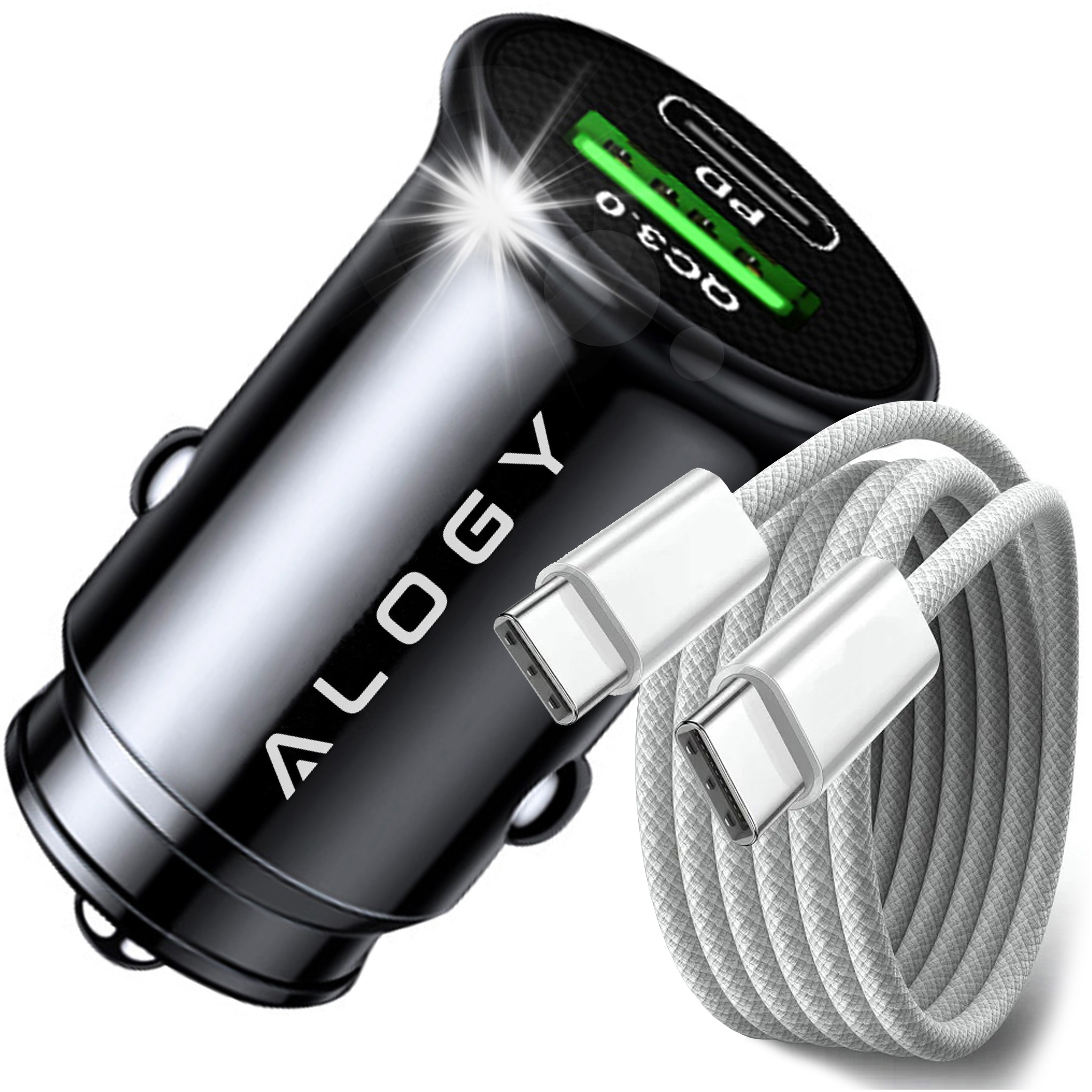 Autoladegerät 38 W USB QC 3.0 18 W USB-C C PD 20 W schnell und stark für Alogy Autotelefon schwarz USB-C-Kabel 1 m x 1