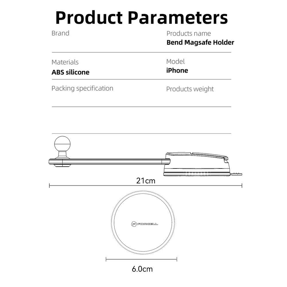 • Forcell MagFlex Magnethalterung mit flexiblem 20 cm langem Arm. Kompatibel mit MagSafe und klassischen Smartphones. Befestigung an Glas oder Tafel. Stabile Befestigung dank starker Magnete. Inklusive Teller und Tücher.