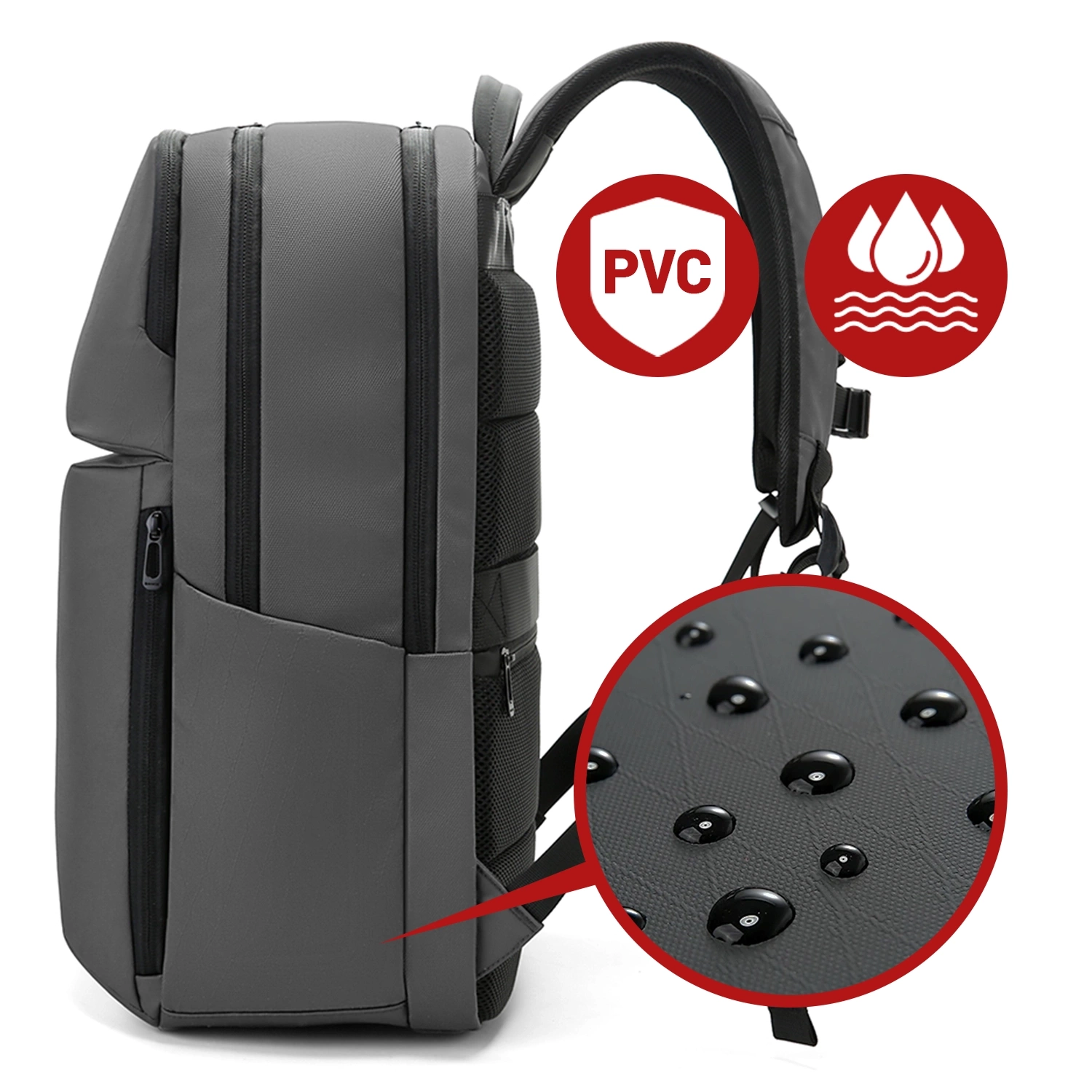 ⛔ Viele Rucksäcke saugen sich bei Regen schnell mit Wasser voll, was zu Feuchtigkeit im Inneren und dem Risiko führt, dass Ihre Ausrüstung beschädigt wird.