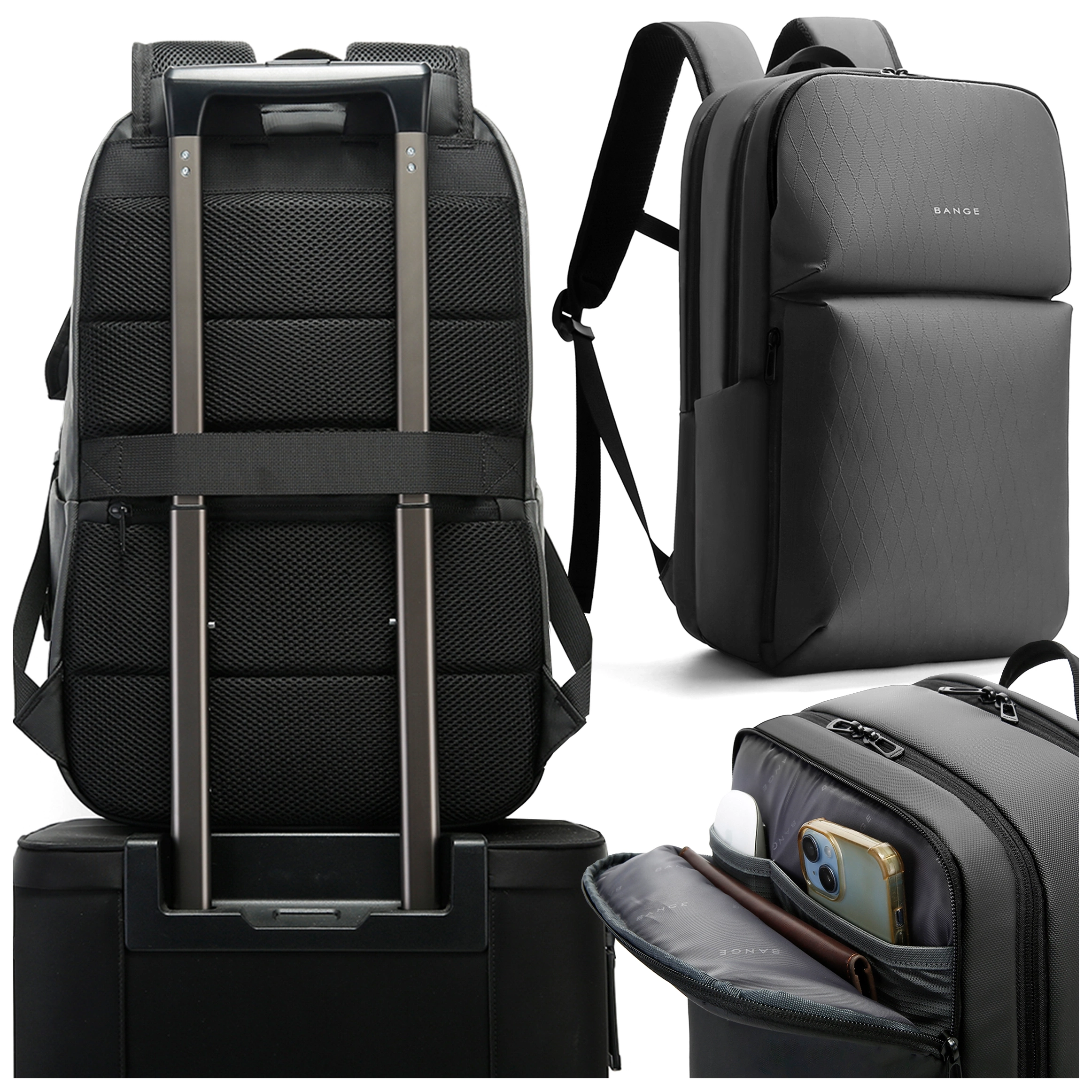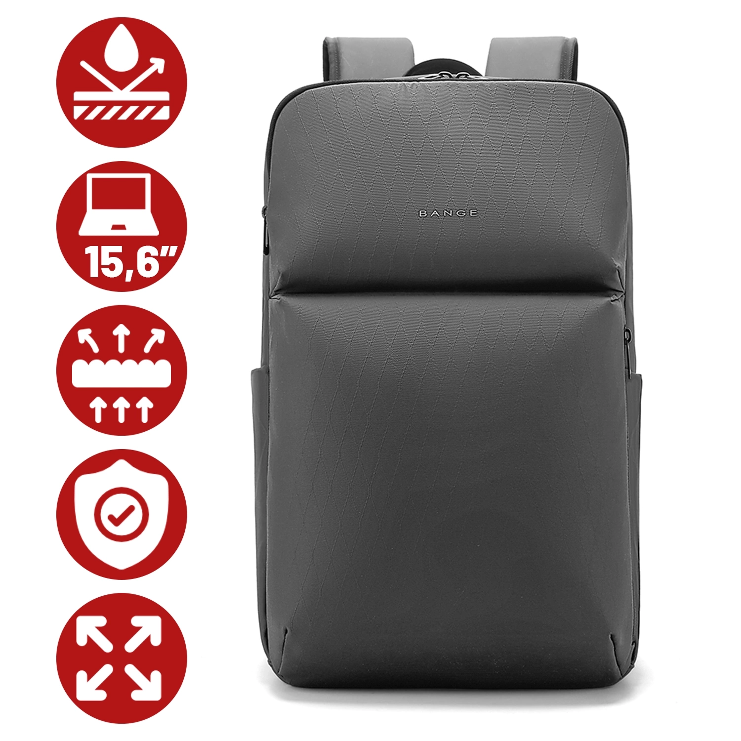 Bange 26L wasserdichter Rucksack für Laptops bis 15,6 Zoll – Geräumig und komfortabel, robust und atmungsaktiv, ideal für Stadt und Reisen, Arbeit und Flugreisen, Unisex – Grau x 1