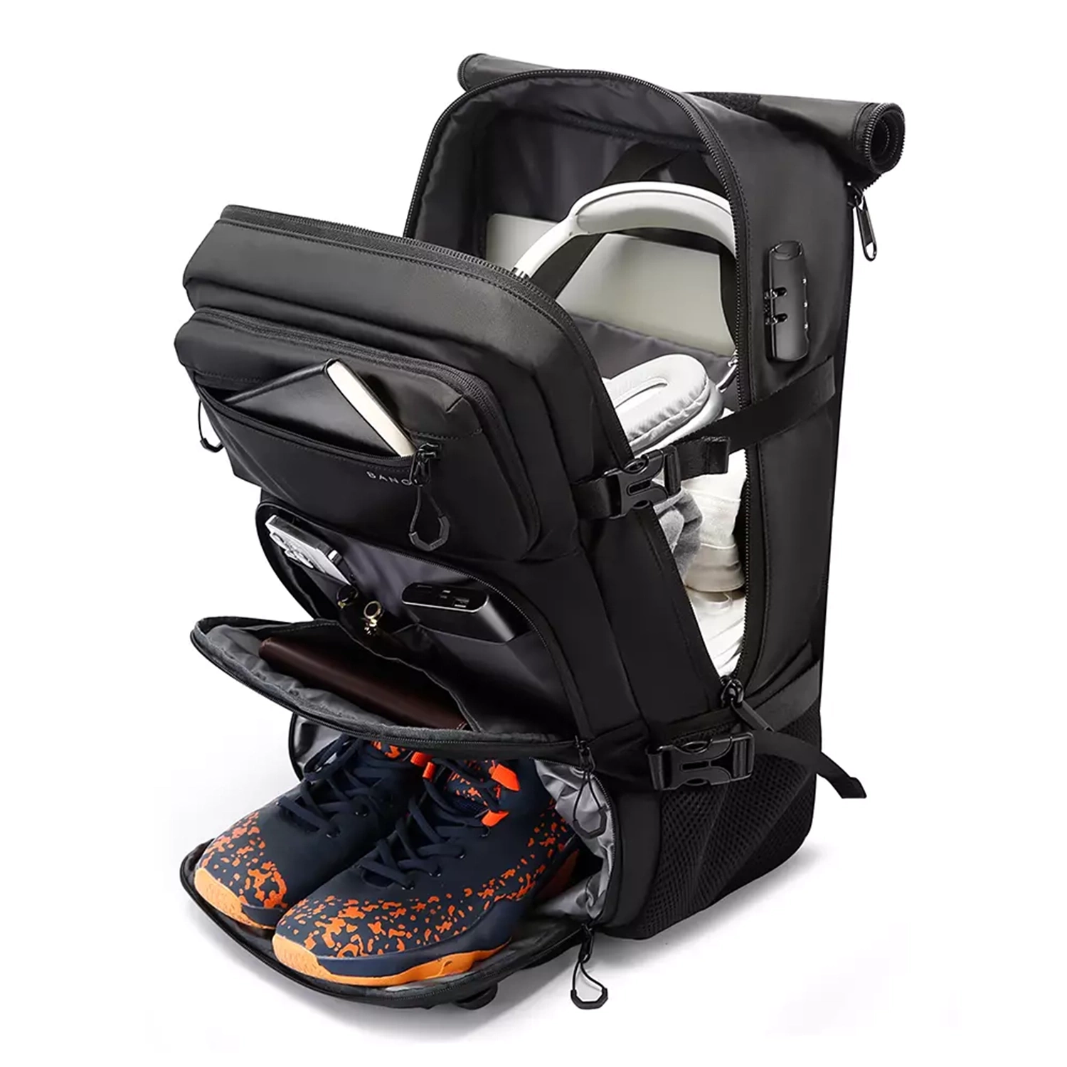 Bange 30L wasserdichter, diebstahlsicherer Rucksack, ideal für Stadt und Reisen, 51 x 32 x 20 cm, für Arbeit und Flugreisen, für Damen und Herren, mit Zahlenschloss und abnehmbarer Tasche, Schwarz x 1