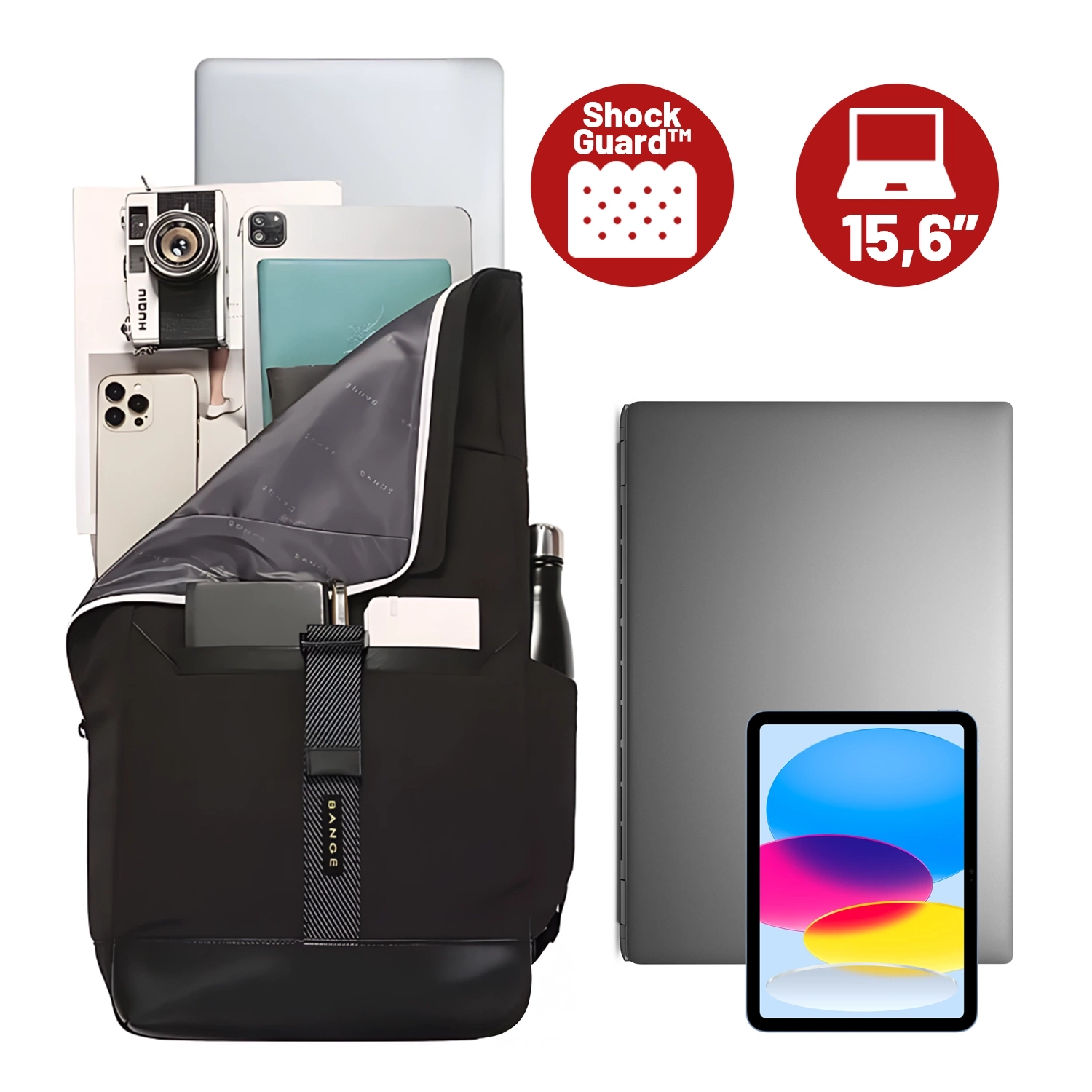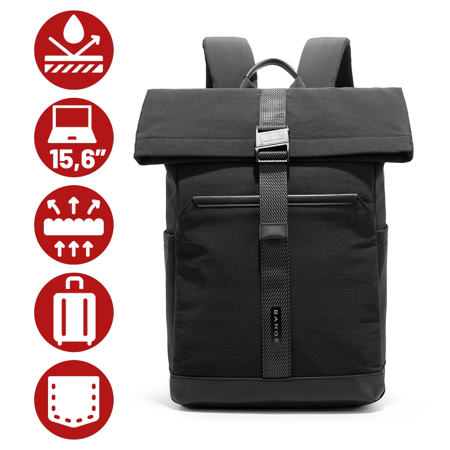 Bange wasserdichter Rucksack für 15,6-Zoll-Laptop, Stadtreisender, 45 x 30 x 16 cm, für Arbeit, Flugzeug, Herren, Damen, mit USB-Anschluss Schwarz x 1