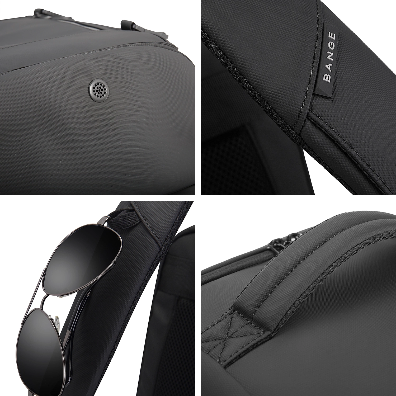 Bange wasserdichter Rucksack für 15,6-Zoll-Laptop, Stadtreisender, 45 x 30 x 16 cm, für Arbeit, Flugzeug, Herren, Damen, mit USB-Anschluss Schwarz x 1