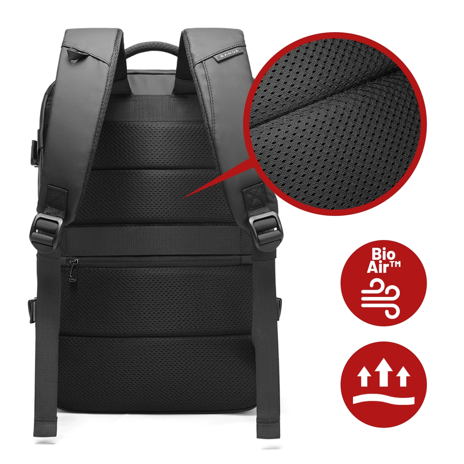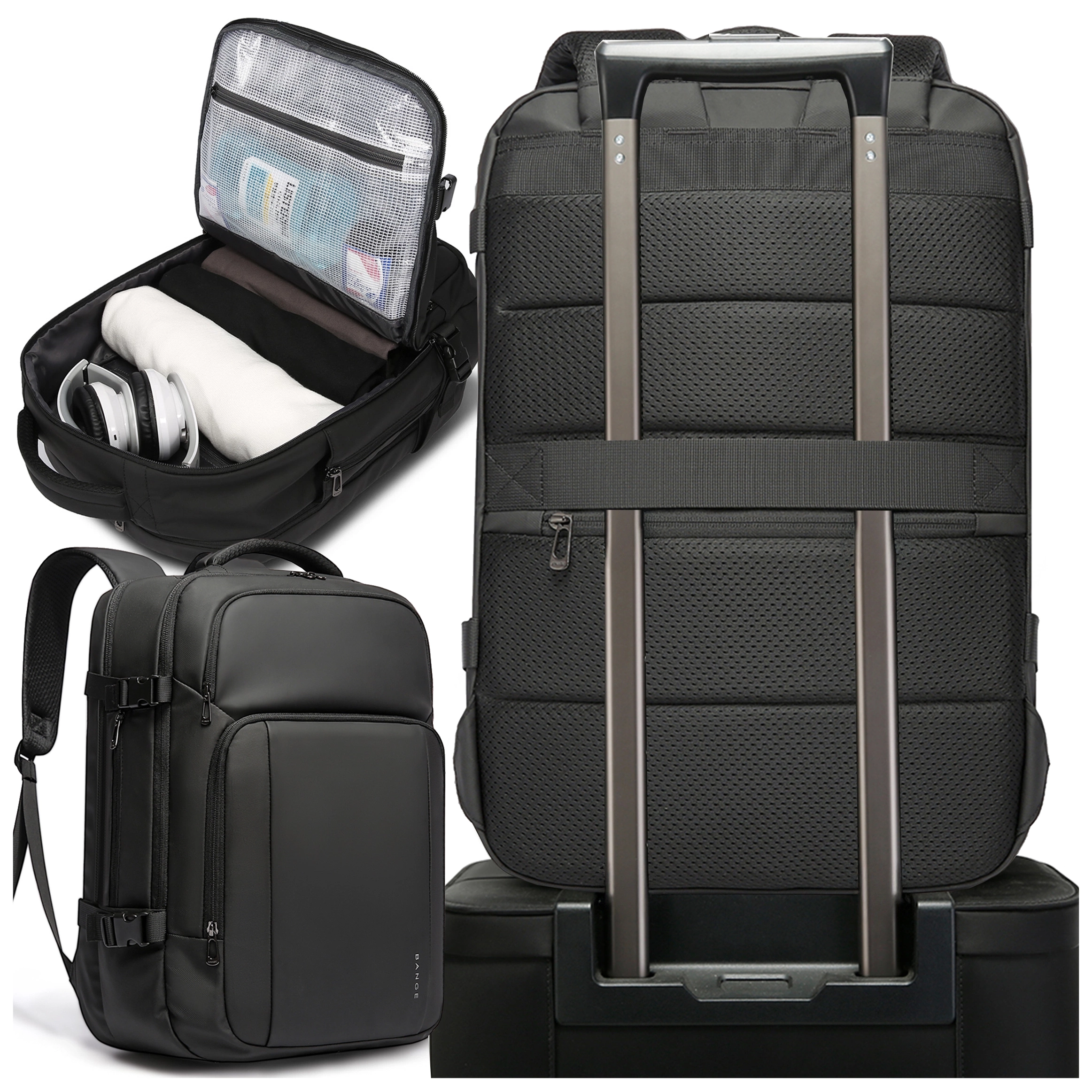 Bange wasserdichter Rucksack für 15,6-Zoll-Laptop, Stadtreisender, 45 x 30 x 16 cm, für Arbeit, Flugzeug, Herren, Damen, mit USB-Anschluss Schwarz x 1