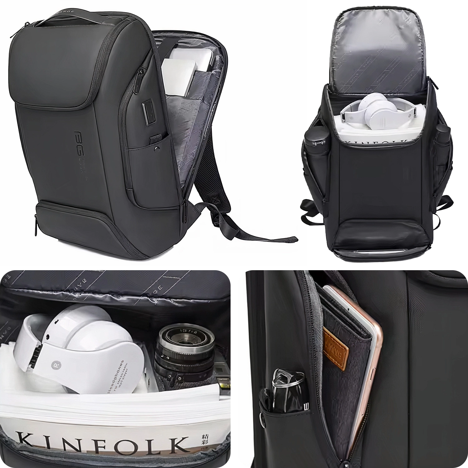 Bange wasserdichter Rucksack, Laptoptasche, 15,6 Zoll, Stadtreisender, 47 x 30 x 15 cm, für Arbeit, Schule, Flugzeug, Herren, Damen, mit USB-Anschluss, Schwarz x 1