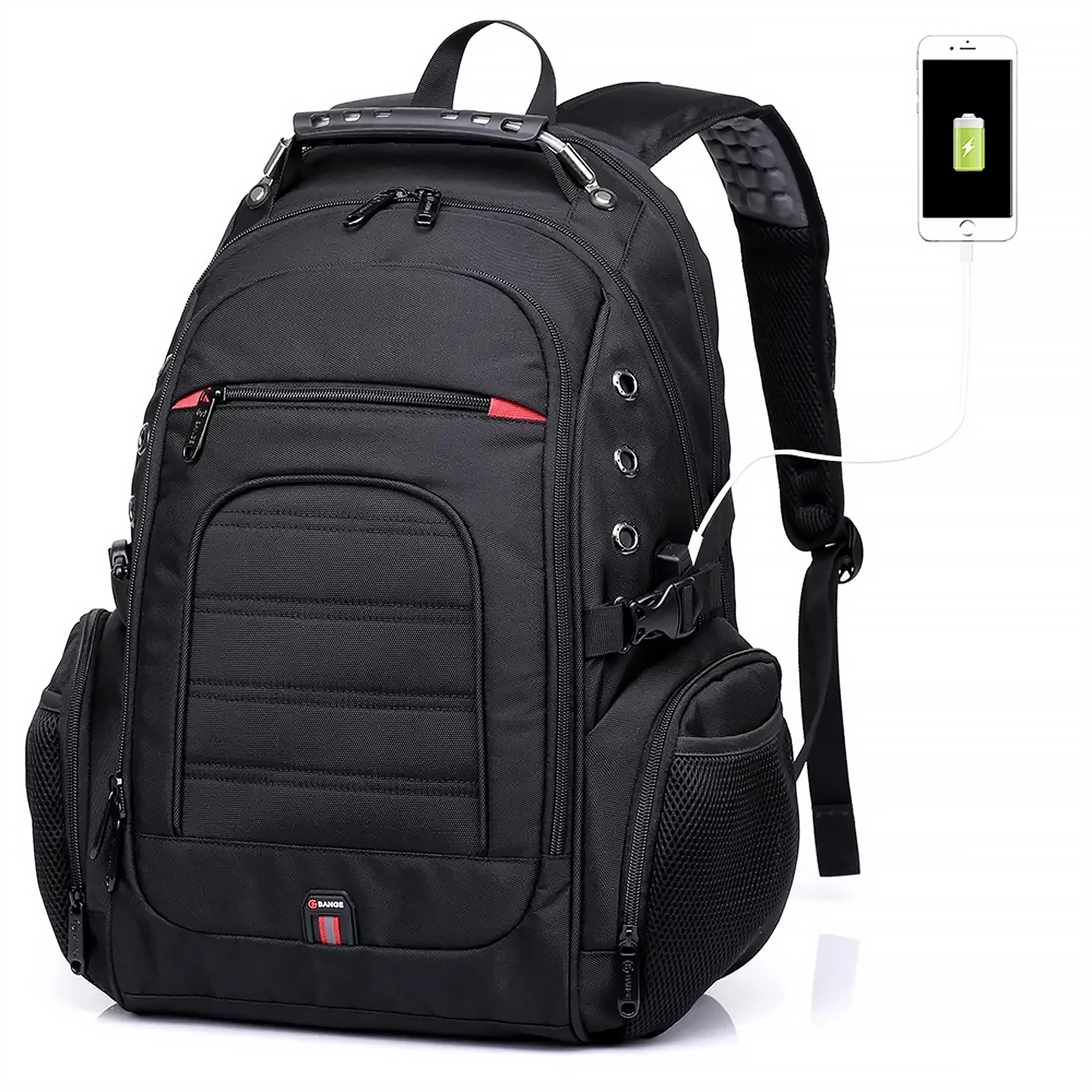 Bange Wasserdichter Rucksack, Laptoptasche, 15 Zoll, Stadtreise, 48 x 35 x 23 cm, für Arbeit, Schule, Flugzeug, Herren, Damen, USB, Schwarz
