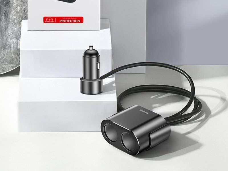 Baseus 2x USB Autoladegerät + geteilte Autozigarette ist ein kompaktes Gerät aus hochwertigstem Metall im Designer-Look. Der Hersteller hat bei der Entwicklung dieses Geräts auf jedes Detail geachtet und versichert uns, dass unser Gerät schnell und sicher aufgeladen wird.