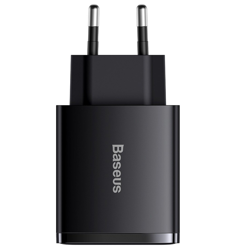 Baseus Kompaktes Schnellladegerät 2xUSB USB-C PD QC 3.0 3A 30W Schwarz x 1