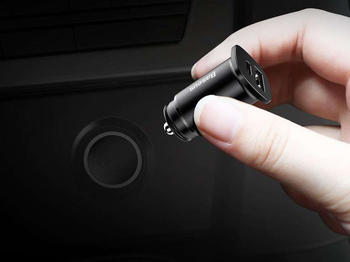 Das Baseus Autoladegerät ist ein kompaktes Gerät mit hoher Ladeleistung. Es besteht aus hochwertigem Aluminium und ist mit zwei universellen Anschlüssen ausgestattet: USB + USB-C Type-C, an die Sie die meisten auf dem Markt erhältlichen Mobilgeräte anschließen können, darunter: ein Smartphone, ein Navigationsgerät oder eine Freisprecheinrichtung .