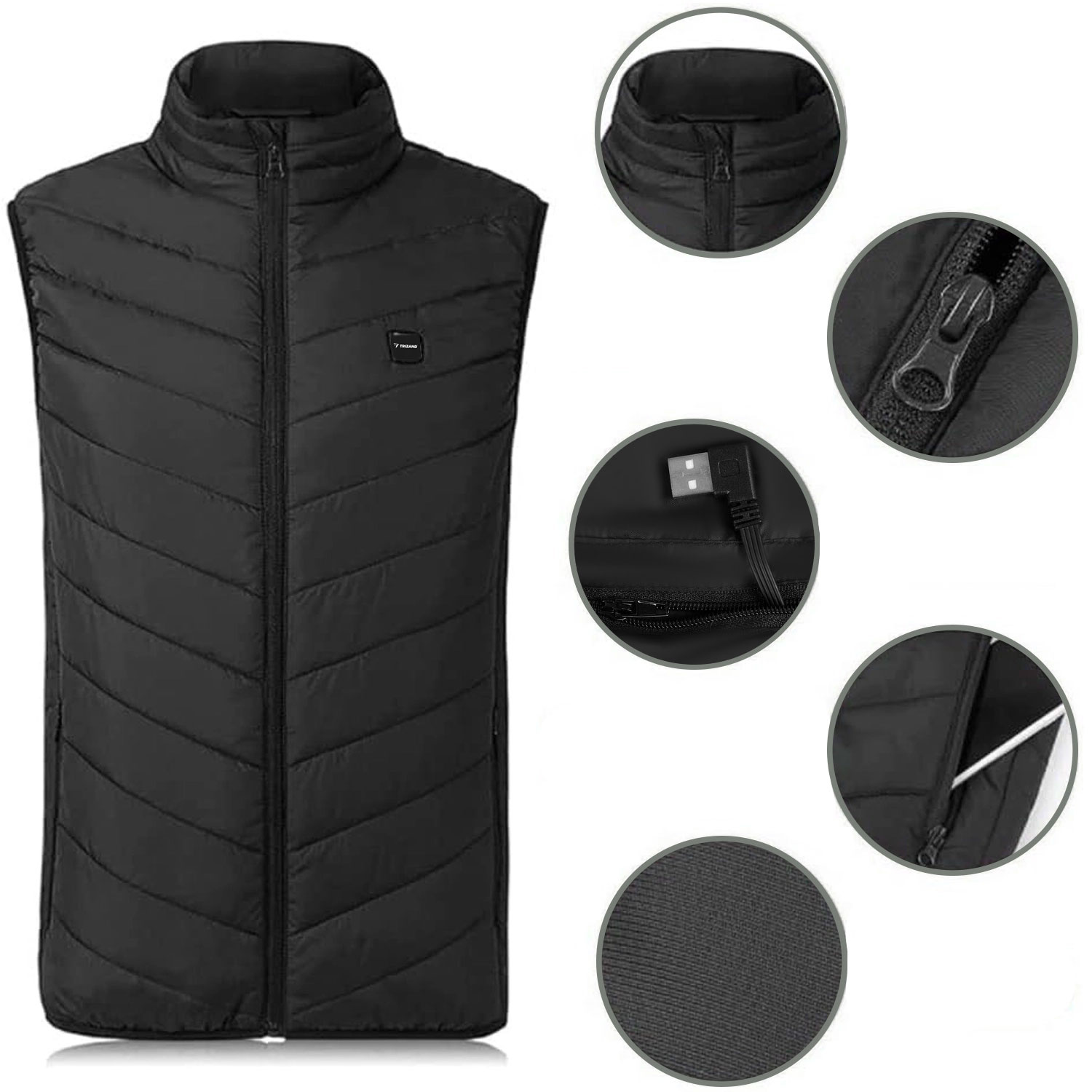 Beheizte Weste Damen Herren ärmellose Jacke USB gesteppt beheizt elektrisch Winter Unisex Größe M Schwarz x 1