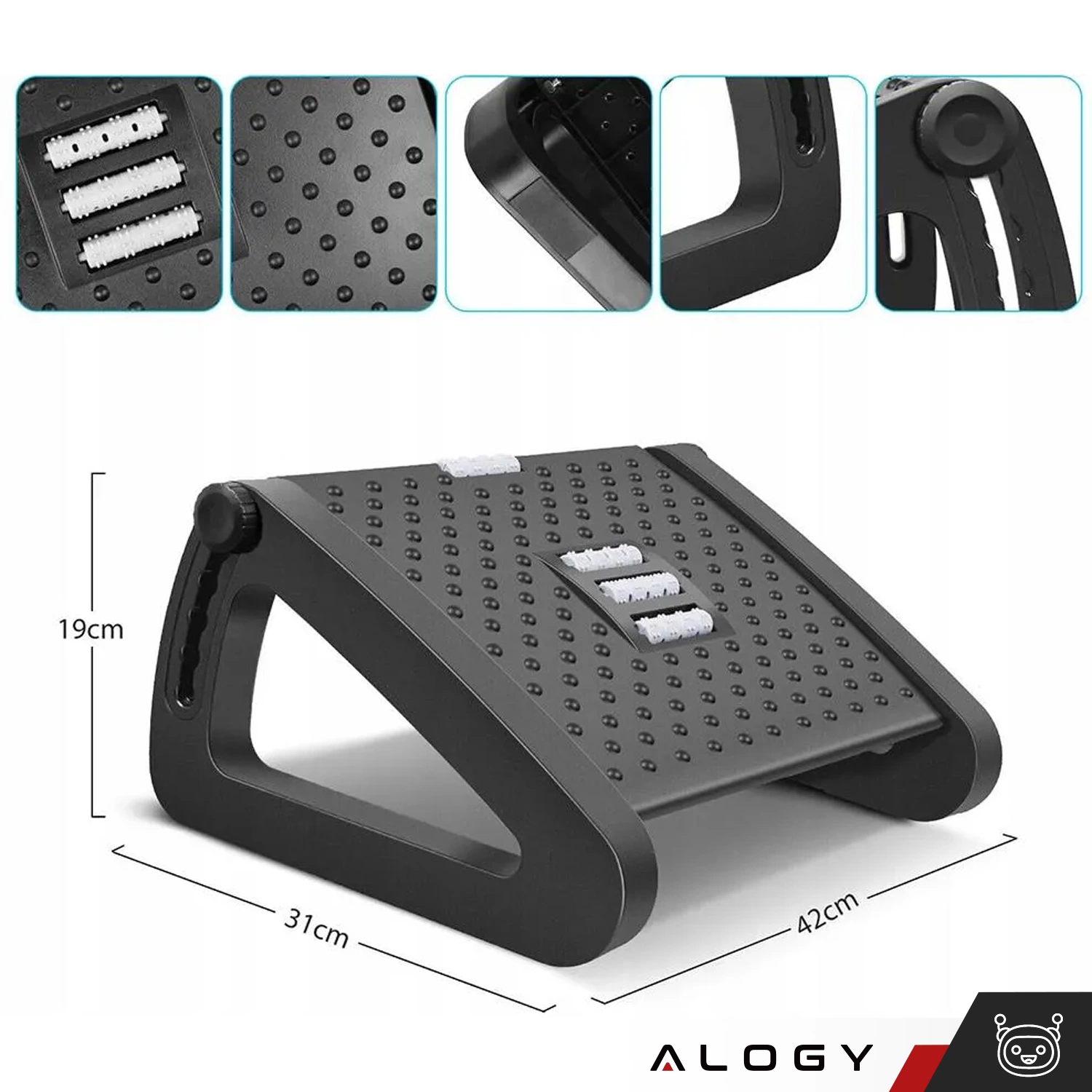 Büro-Fußstütze, Fußstütze, Beine für Arbeit, Büro, Fußmassage, verstellbare Höhenverstellung, Alogy, Schwarz x 1