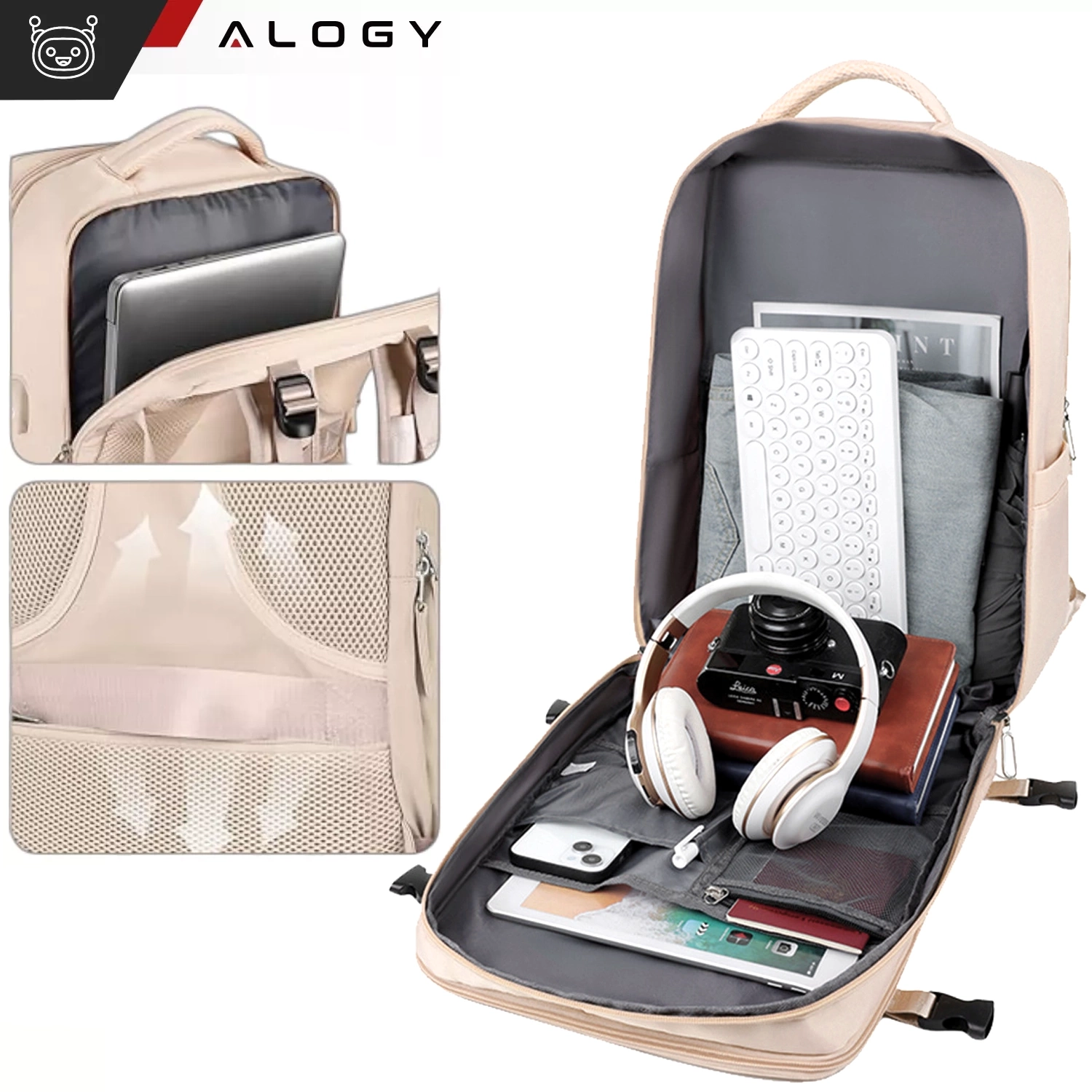 Damen-Reise-Laptop-Rucksack für Koffer, Gepäck, Flugzeug, Arbeit, Schule, 45 x 30 x 20 cm, Alogy Beige x 1