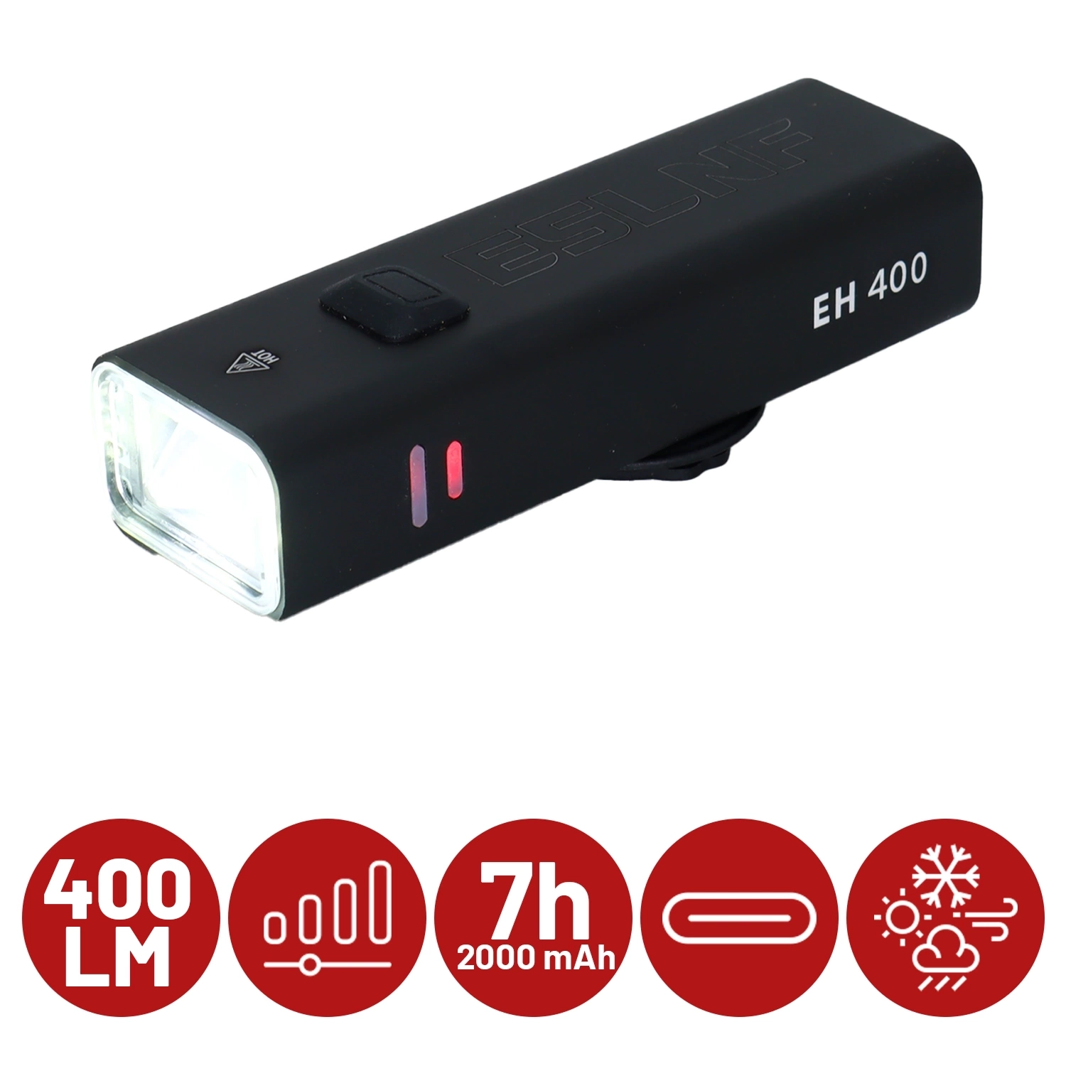 EH 400 LED-Fahrradfrontlicht, einstellbare 400 Lumen, 2000 mAh, wasserdicht, schwarz x 1