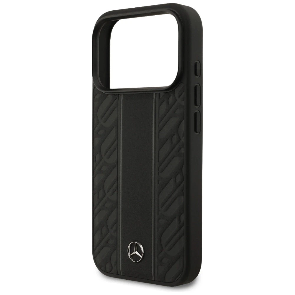 Etui Mercedes-Benz Leather Laurel Leaves Stripes MagSafe do iPhone 17 Pro to połączenie elegancji, jakości i funkcjonalności. Wykonane z naturalnej skóry, tworzywa TPU oraz PC, oferuje solidną ochronę, a jednocześnie podkreśla luksusowy charakter urządzenia.