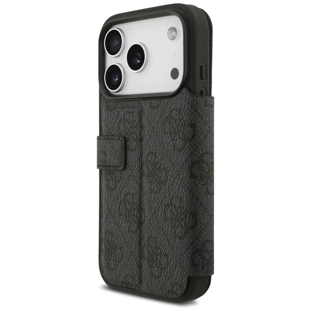 Etui Guess Book 4G Metal Logo do iPhone 17 Pro to połączenie elegancji, funkcjonalności i niezawodnej ochrony. Wykonane z wysokiej jakości skóry ekologicznej, zapewnia trwałość i komfort użytkowania, a charakterystyczny wzór 4G i metalowe logo Guess podkreślają jego luksusowy charakter.